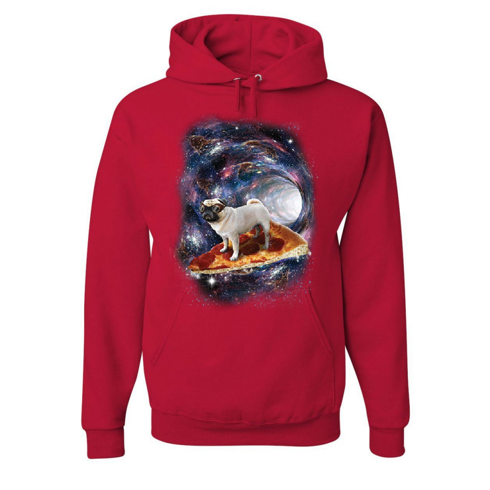 PUG SPACE PIZZA SURFER hoodie weird goggles galaxy dog lovers sweatshirt red