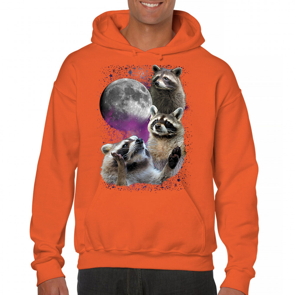 Embrace nature with this quirky raccoon and moon design, perfect for space and animal lovers. Ideal for casual wear or gifts.