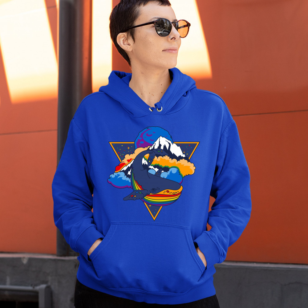 RAINBOW SPACE WHALE sweatshirt lgbt pride queer tolerance trippy hoodie royal blue
