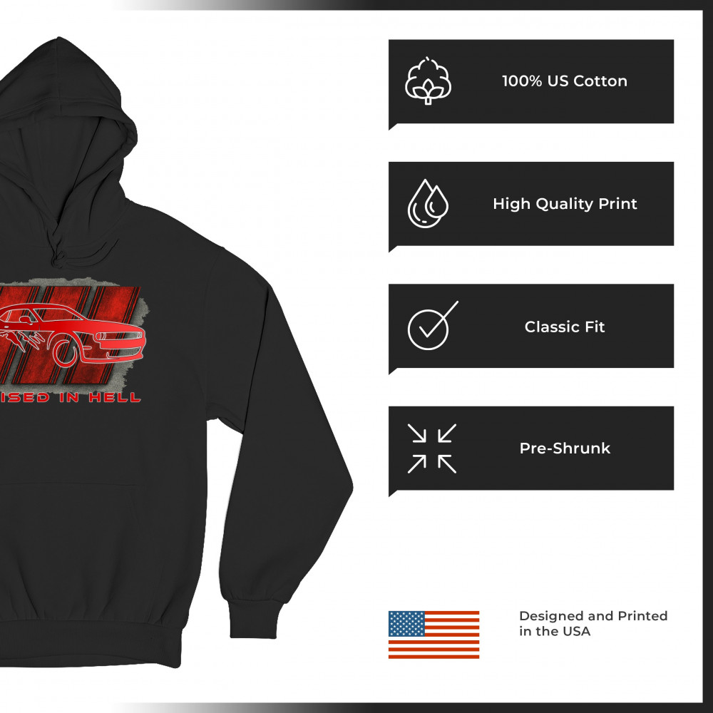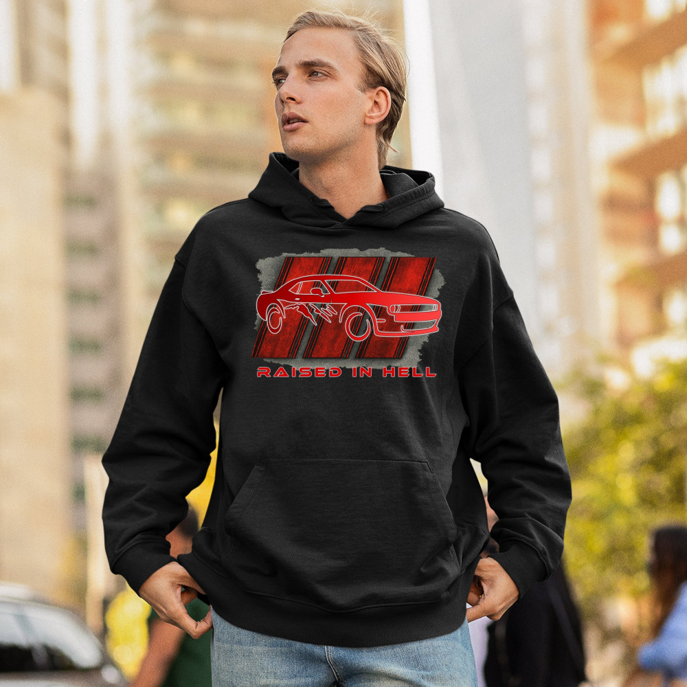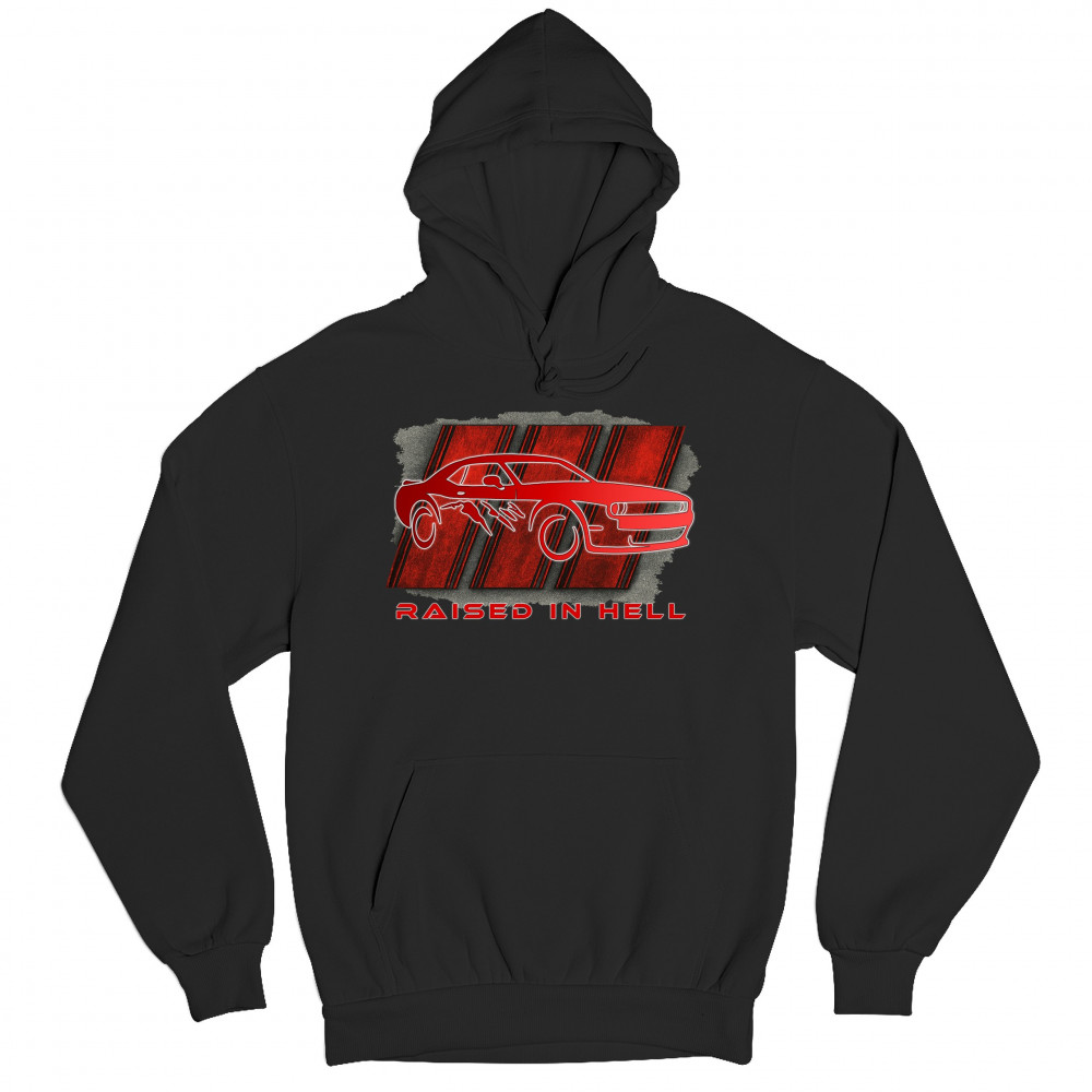 RAISED IN HELL MUSCLE CAR sweatshirt american performance power rt v8 hoodie black