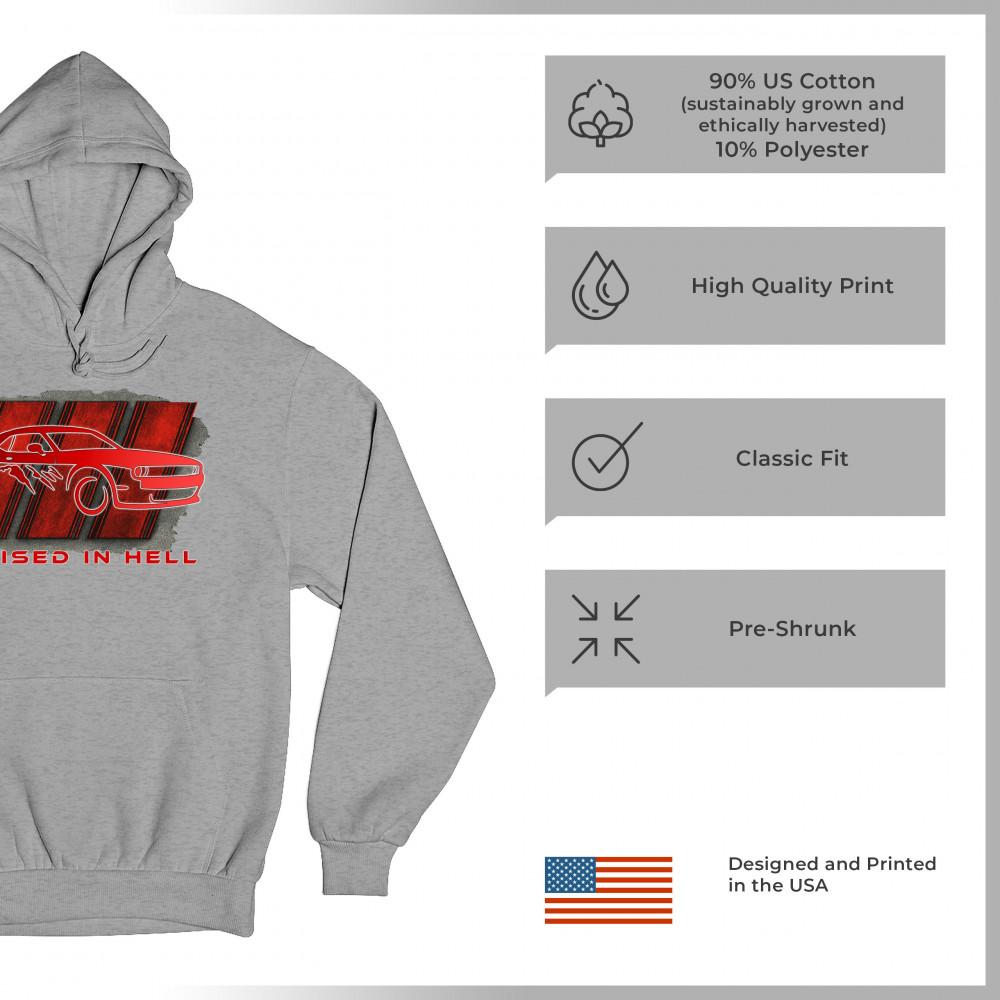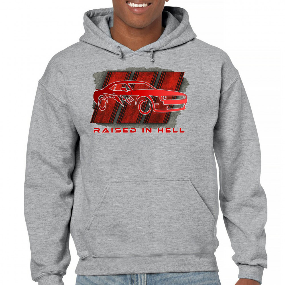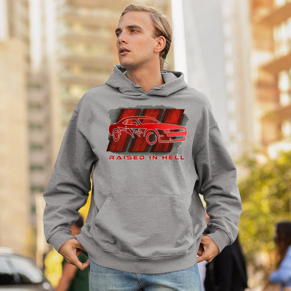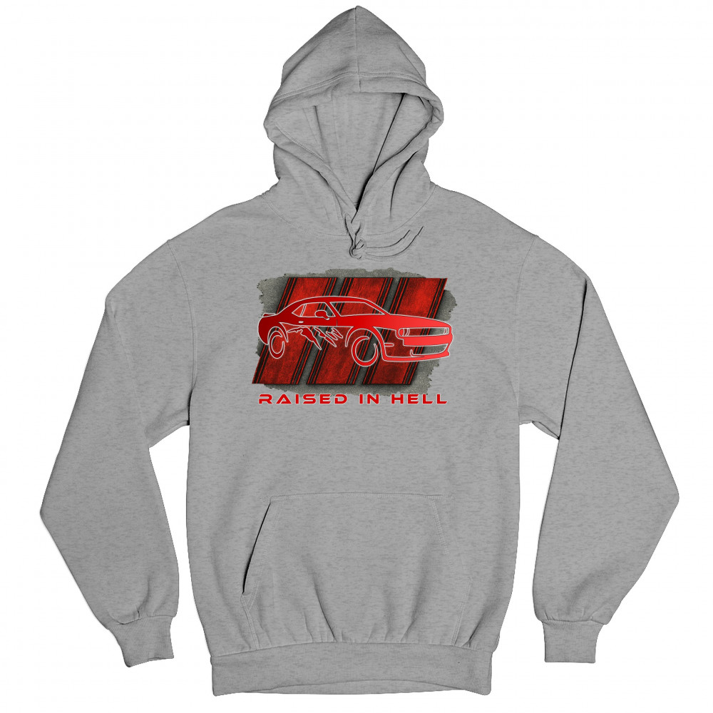 RAISED IN HELL MUSCLE CAR sweatshirt american performance power rt v8 hoodie gray