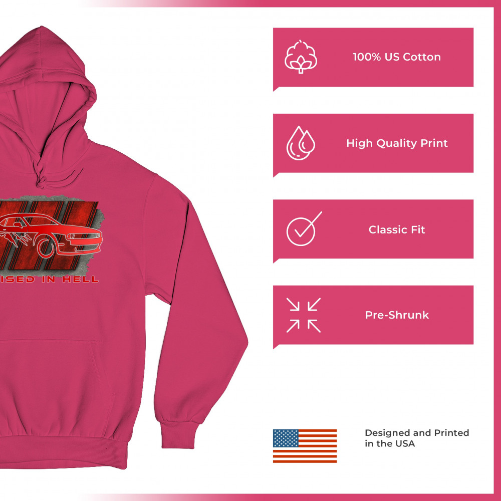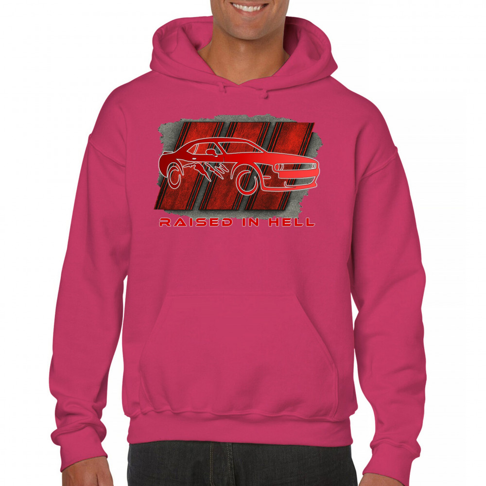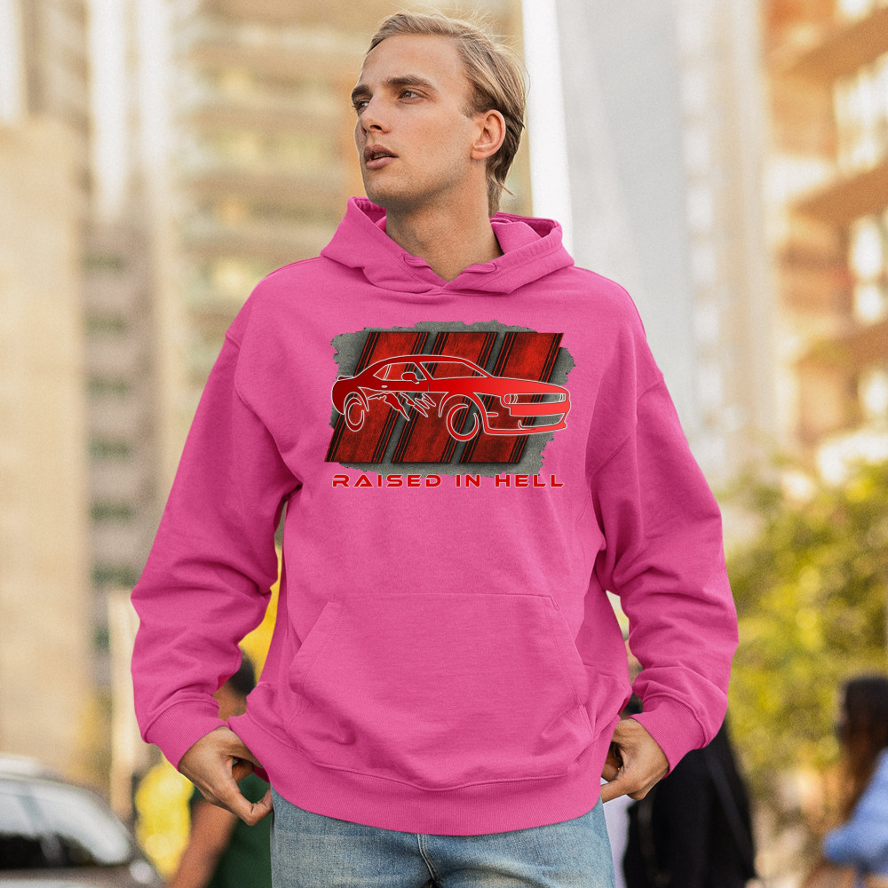 Bring heat to the streets with this Raised in Hell design. Featuring a blazing red muscle car and aggressive claw marks, it's perfect for Scat Pack lovers, burnout warriors, and throttle addicts. Whether you're tearing down the strip or parked at the meet, this design delivers pure muscle attitude and street-born fire.