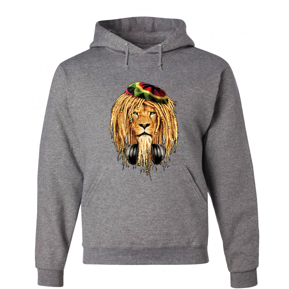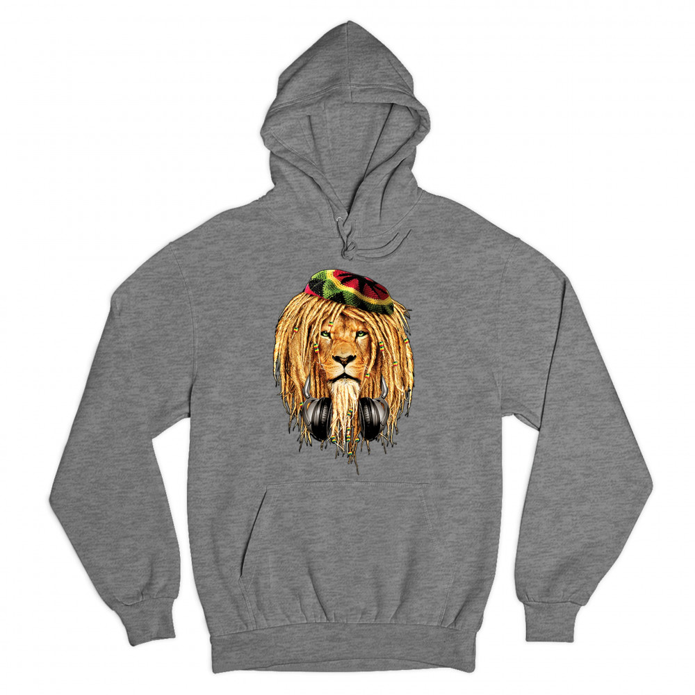 RASTA LION WITH HEADPHONES sweatshirt jah jamaica reggae 420 culture hoodie gray