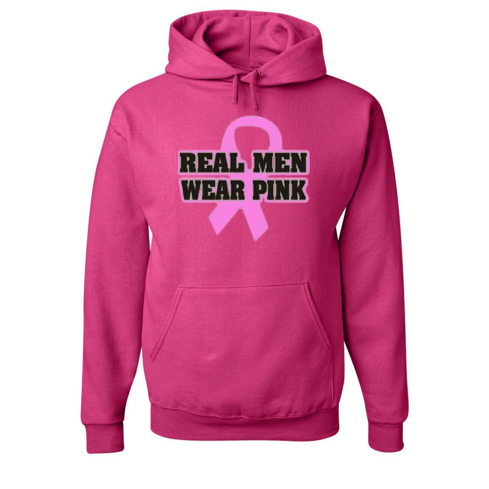 REAL MEN WEAR PINK hoodie breast cancer awareness sweatshirt hot pink