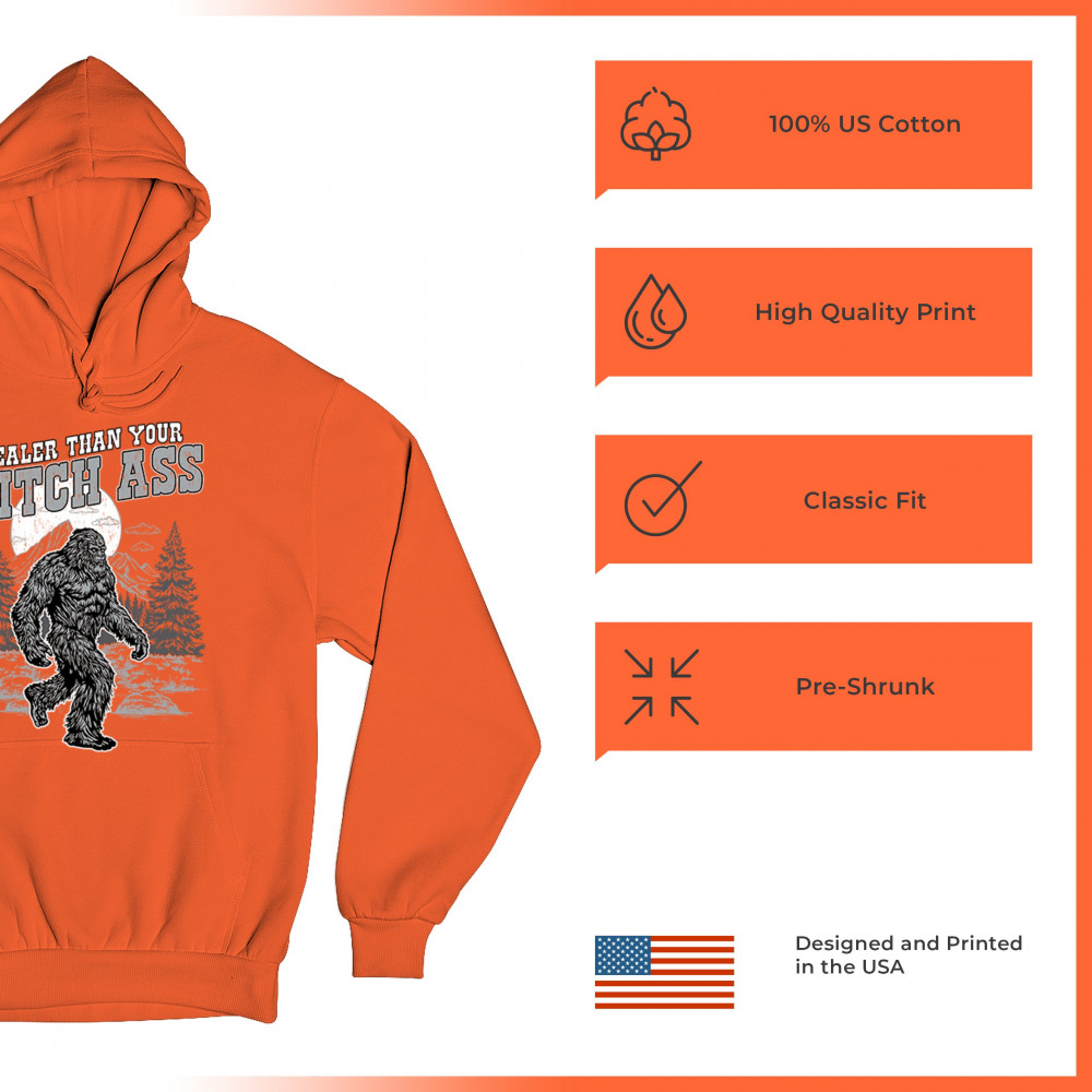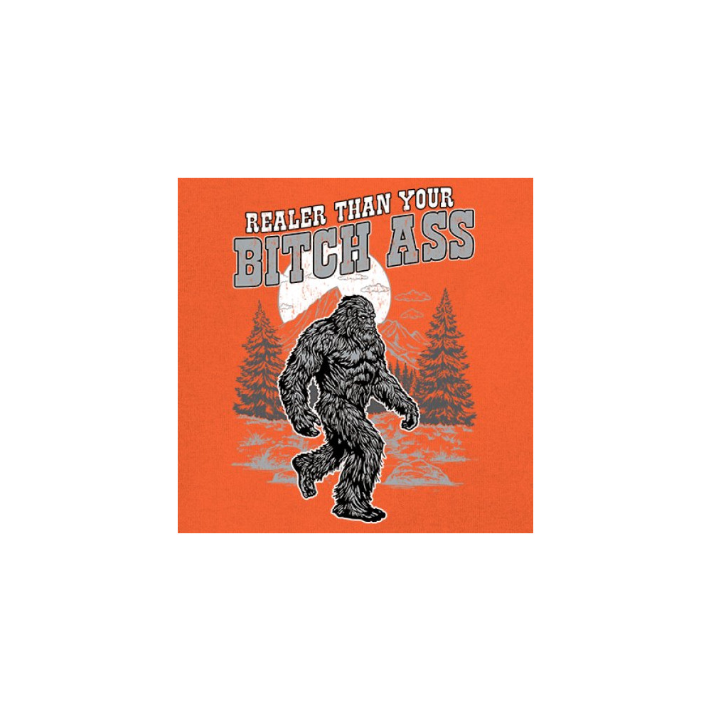 Edgy Bigfoot design with sarcastic cryptid humor and gritty wilderness style. Great for trolls, jokers, and rugged outdoors fans.