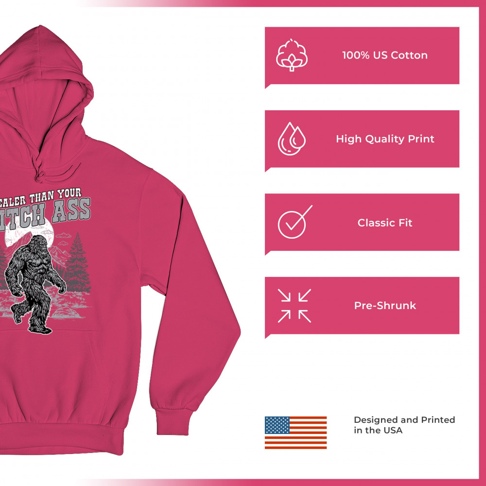 Edgy Bigfoot design with sarcastic cryptid humor and gritty wilderness style. Great for trolls, jokers, and rugged outdoors fans.