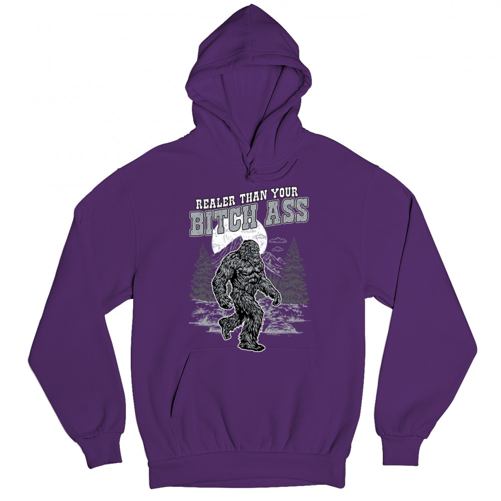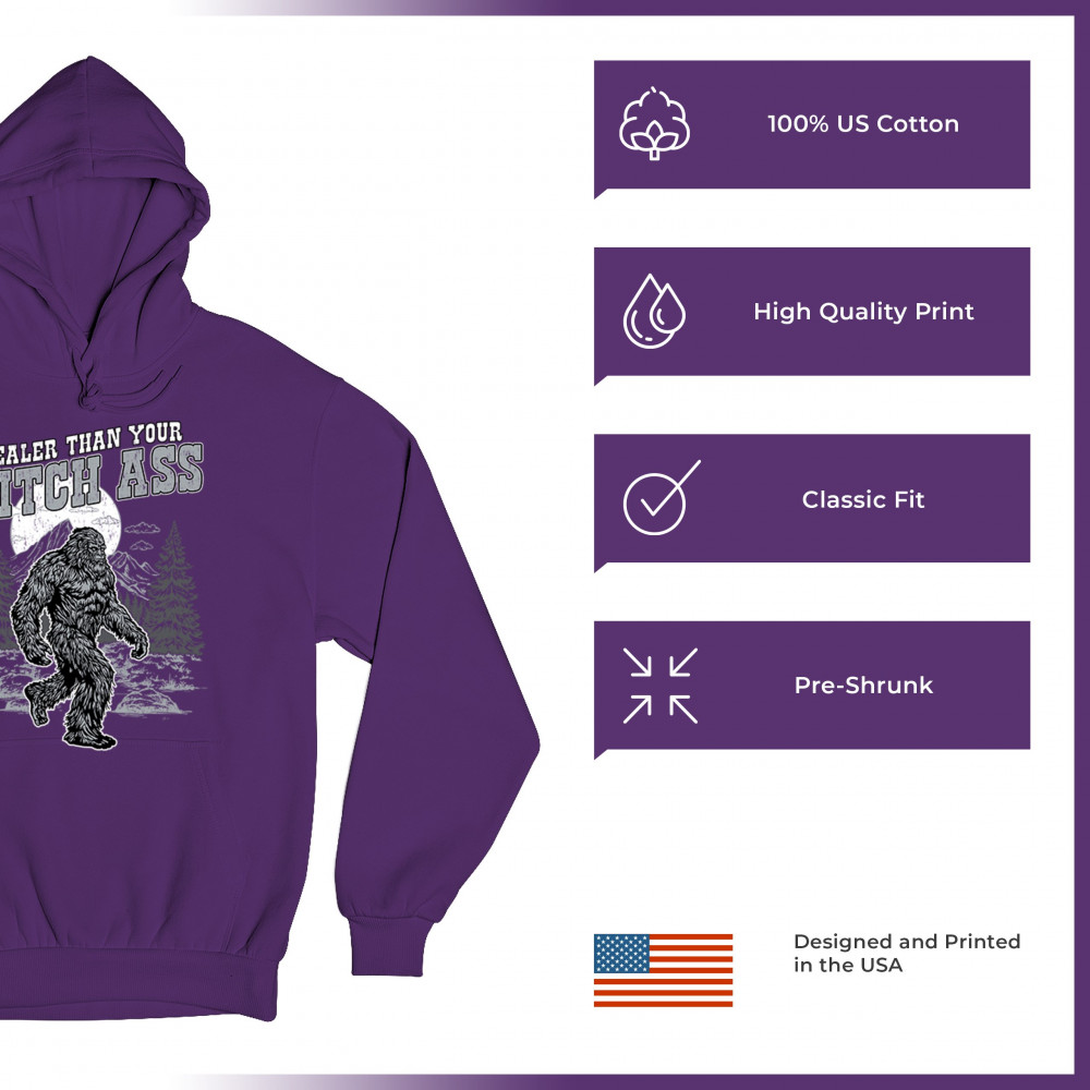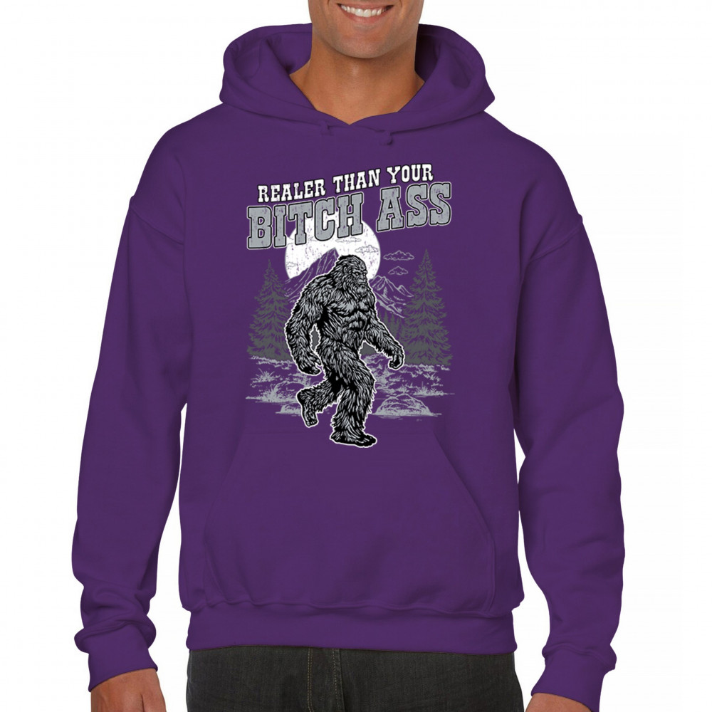 Edgy Bigfoot design with sarcastic cryptid humor and gritty wilderness style. Great for trolls, jokers, and rugged outdoors fans.