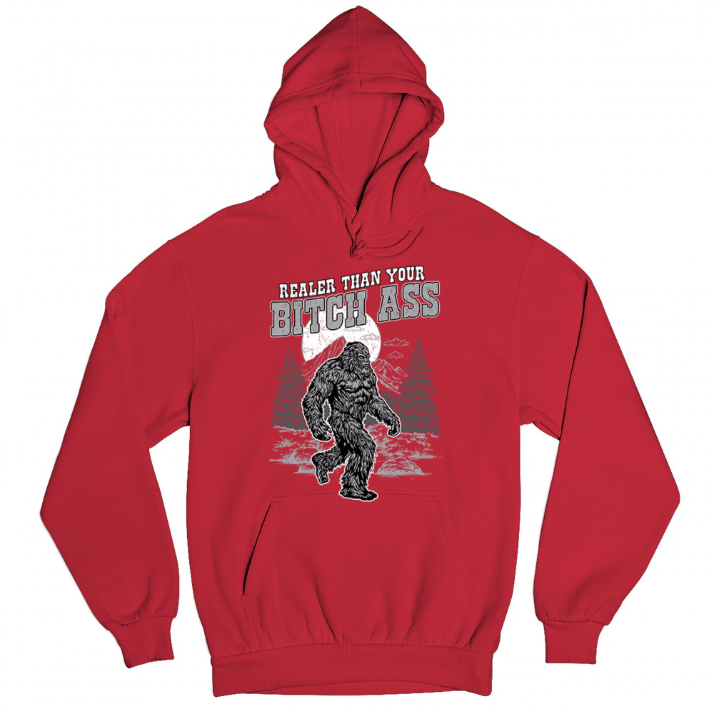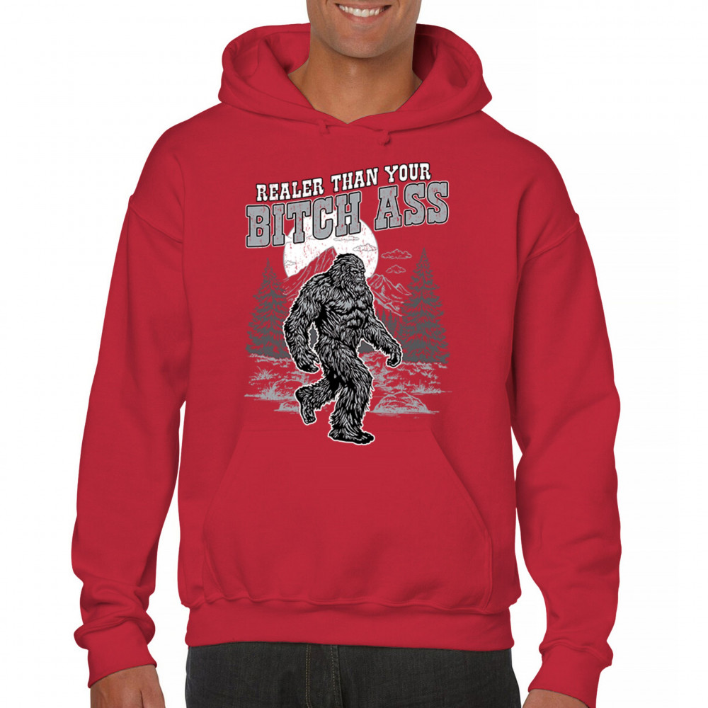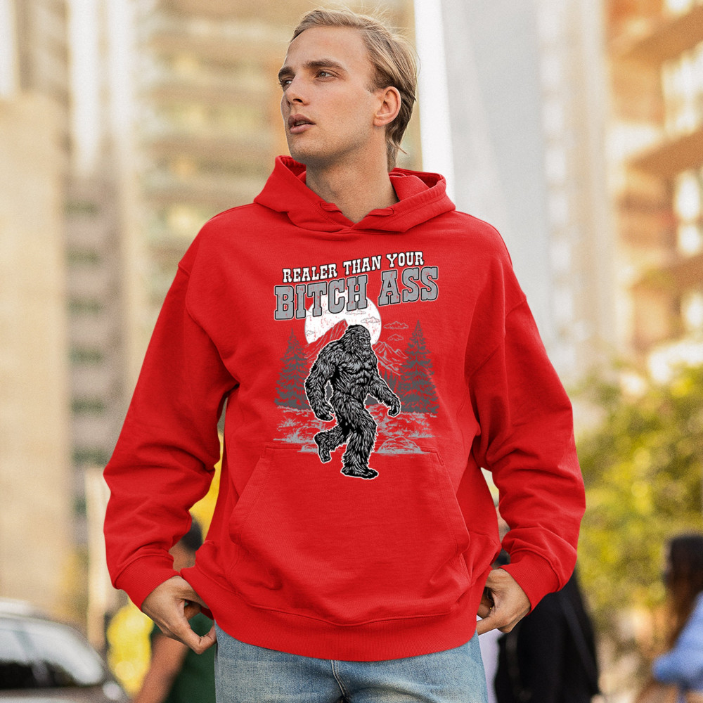 Edgy Bigfoot design with sarcastic cryptid humor and gritty wilderness style. Great for trolls, jokers, and rugged outdoors fans.