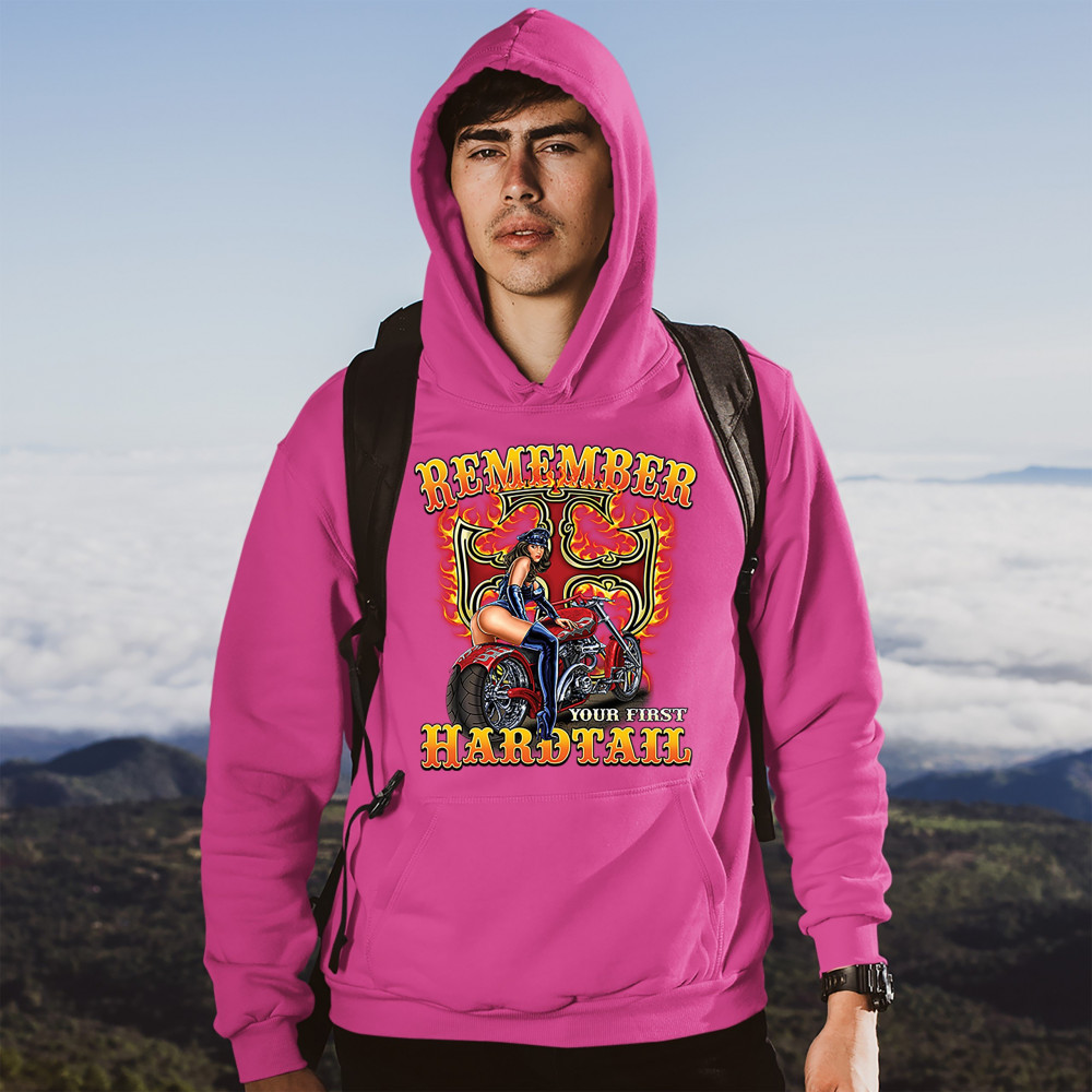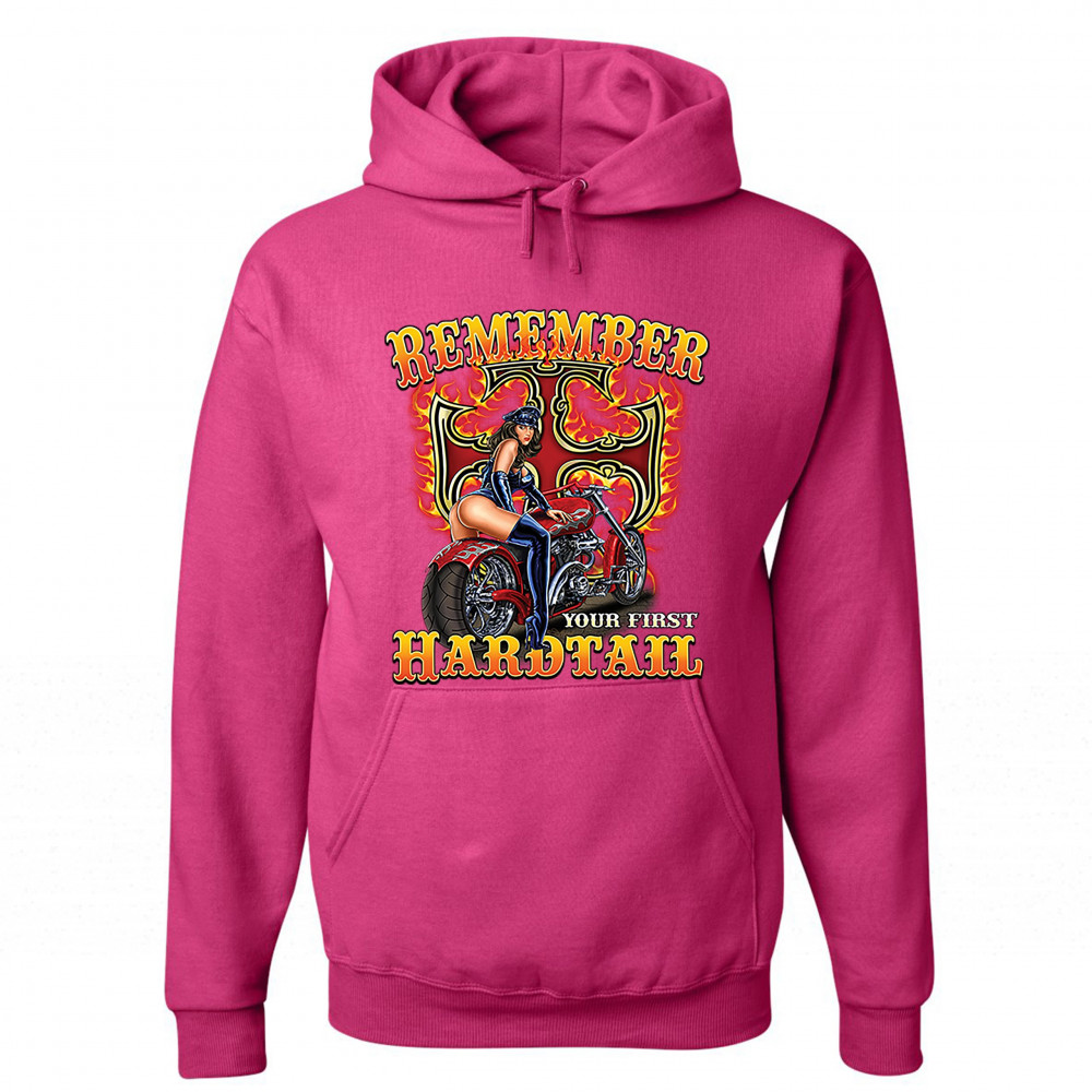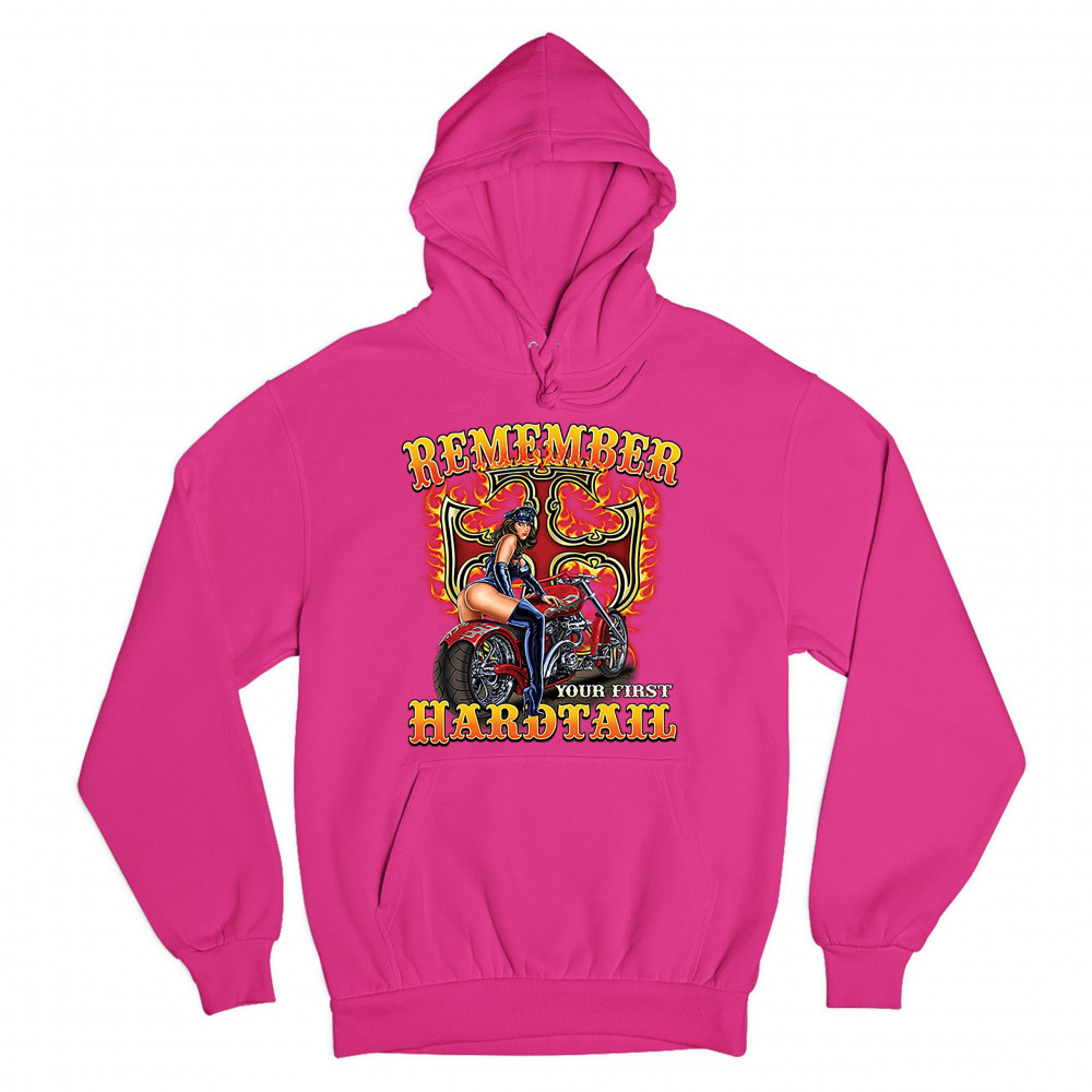 REMEMBER YOUR FIRST HARDTAIL sweatshirt biker babe motorcycle chopper hoodie pink