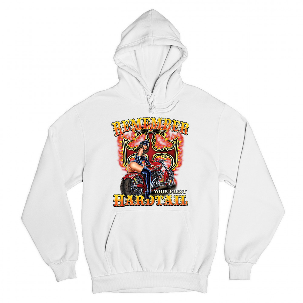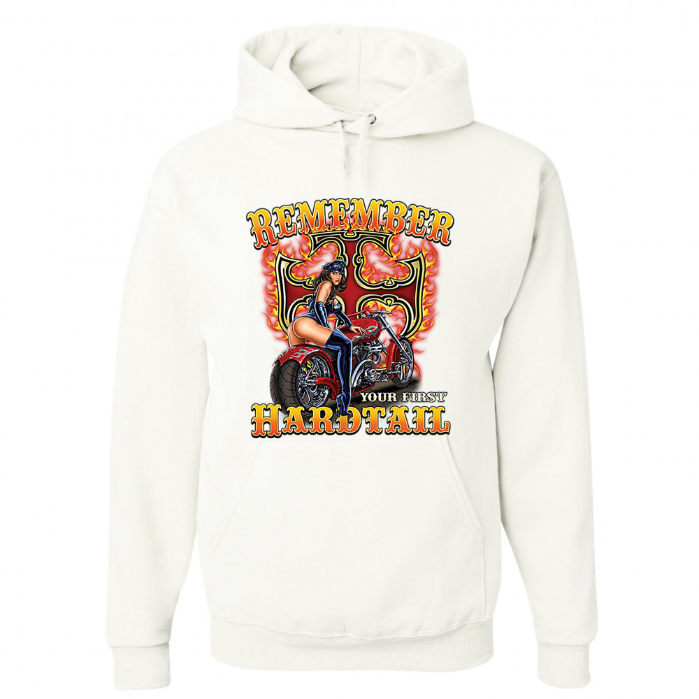 REMEMBER YOUR FIRST HARDTAIL sweatshirt biker babe motorcycle chopper hoodie white