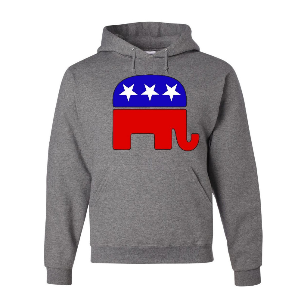 REPUBLICAN PARTY ELEPHANT logo hoodie political conservative sweatshirt gray