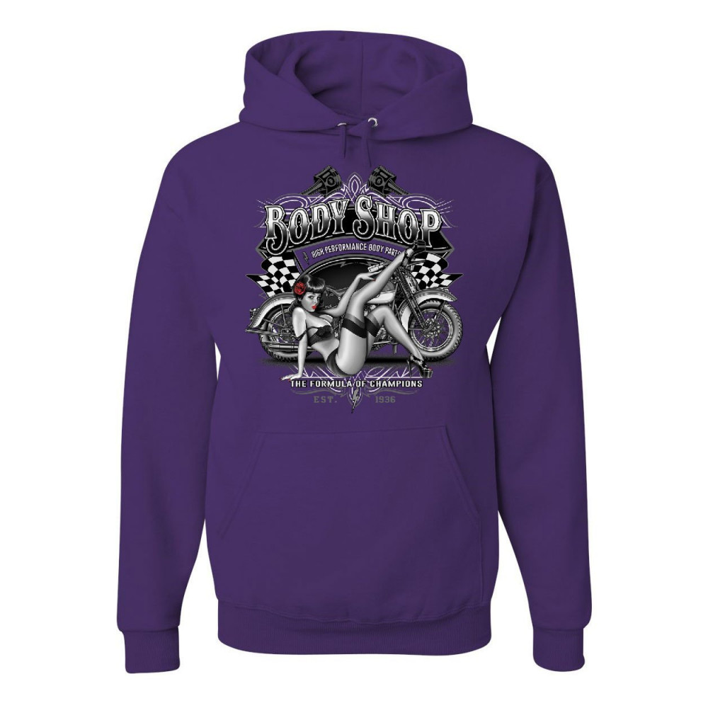 RETRO BODY SHOP hoodie chopper sexy pin-up girl route 66 biker sweatshirt purple