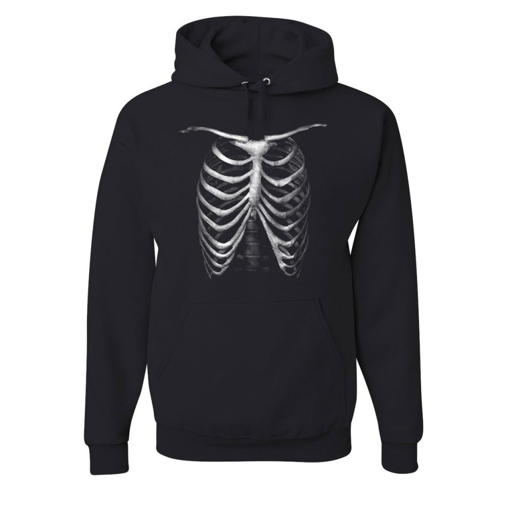 RIB CAGE GLOW IN THE DARK hoodie skeleton halloween bones xray sweatshirt black