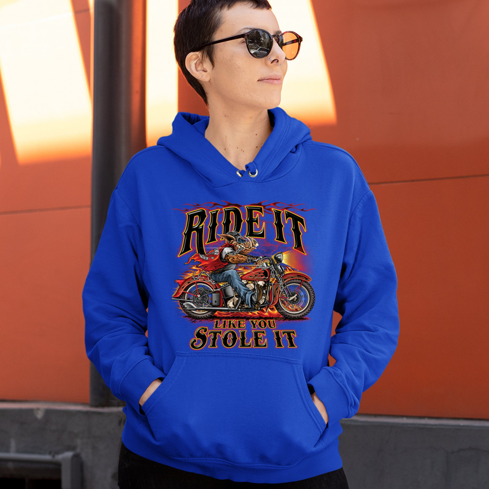 RIDE IT LIKE YOU STOLE IT sweatshirt biker born to be wild motorcycle hoodie royal blue