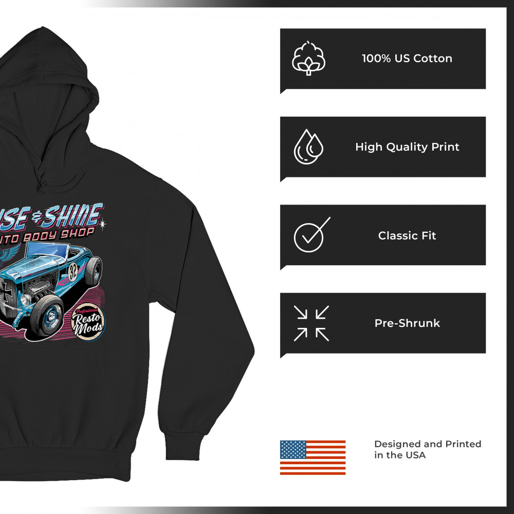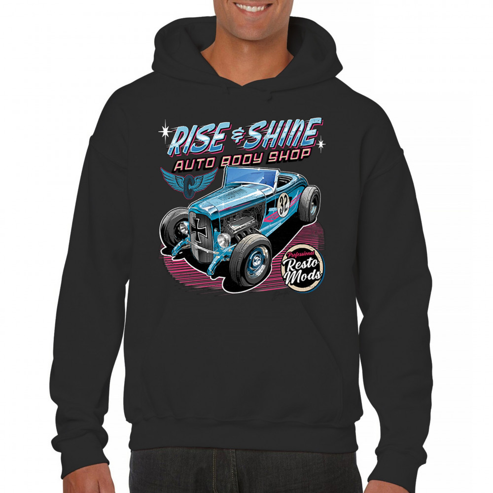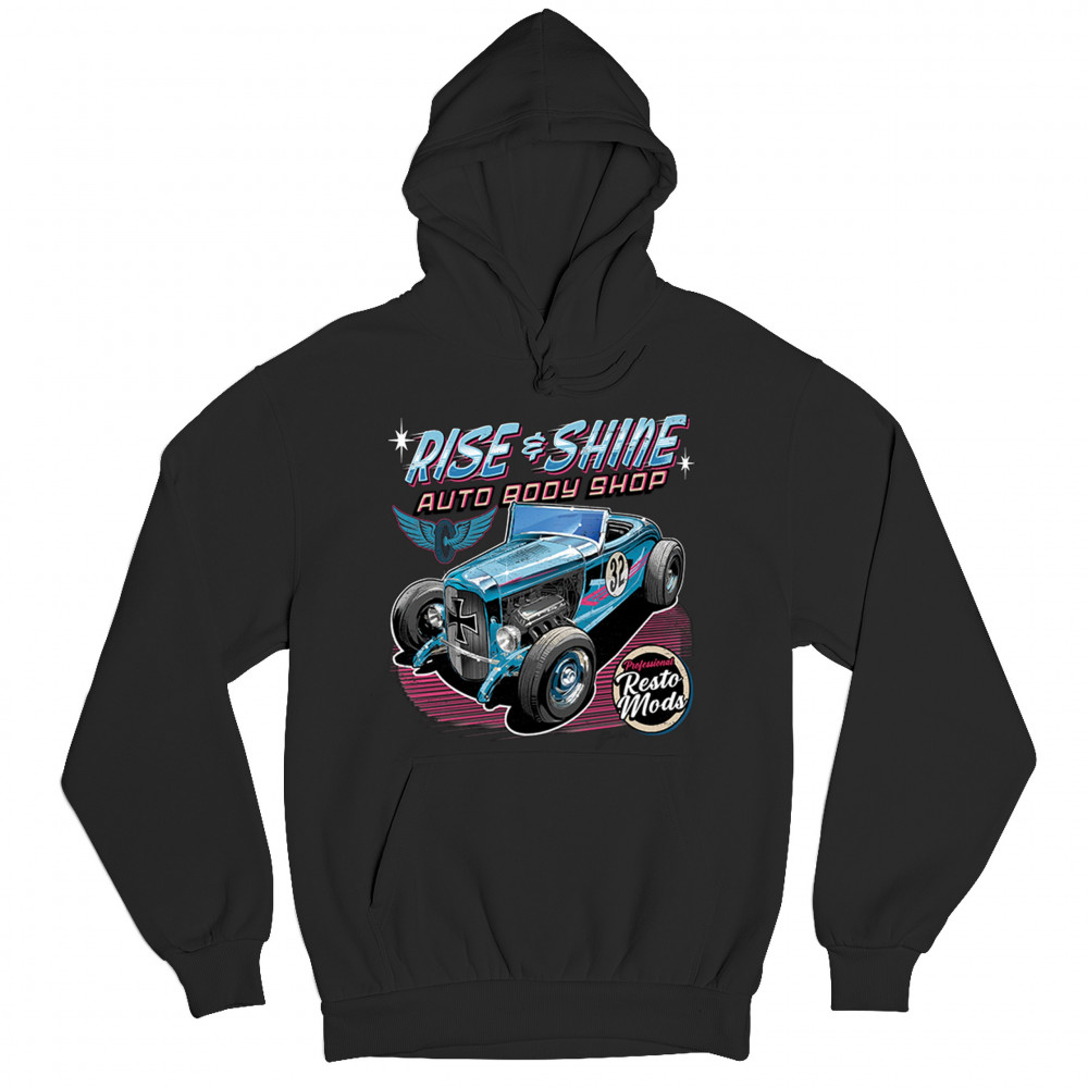 RISE AND SHINE HOT ROD sweatshirt auto body shop custom classic cars hoodie black