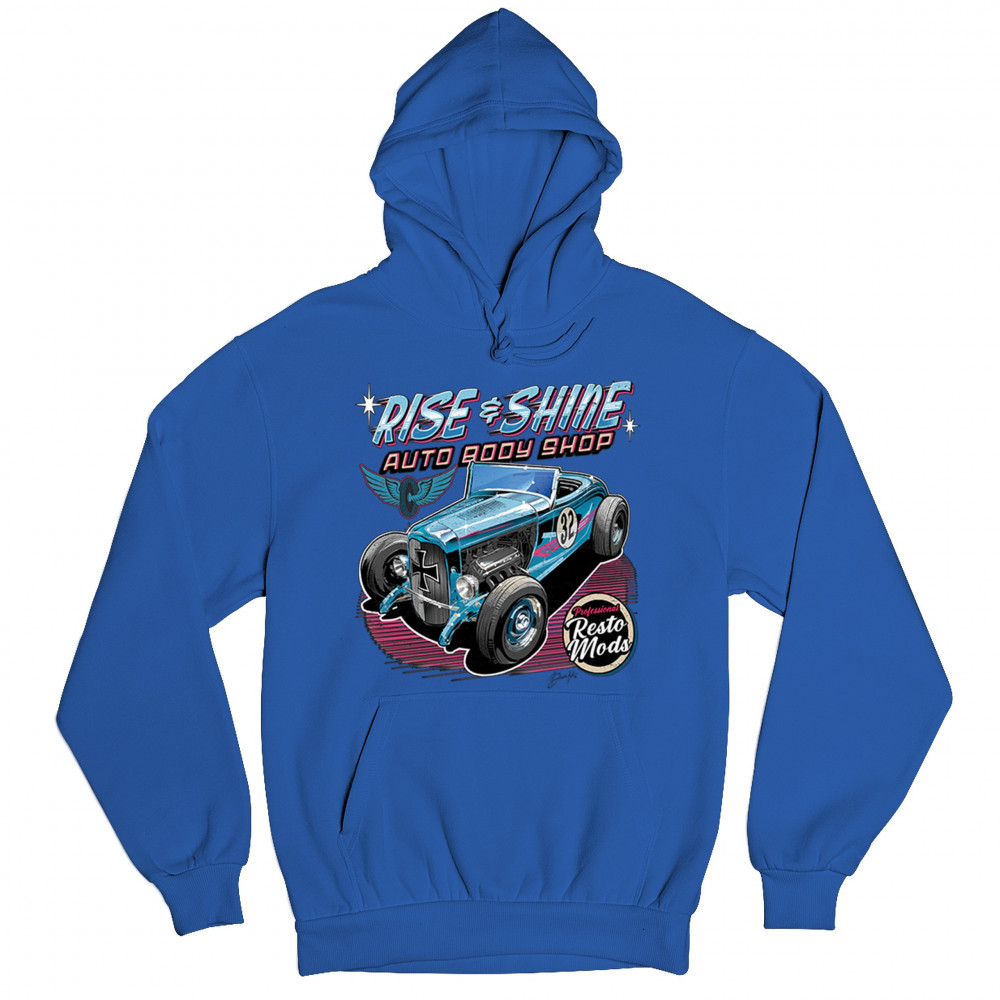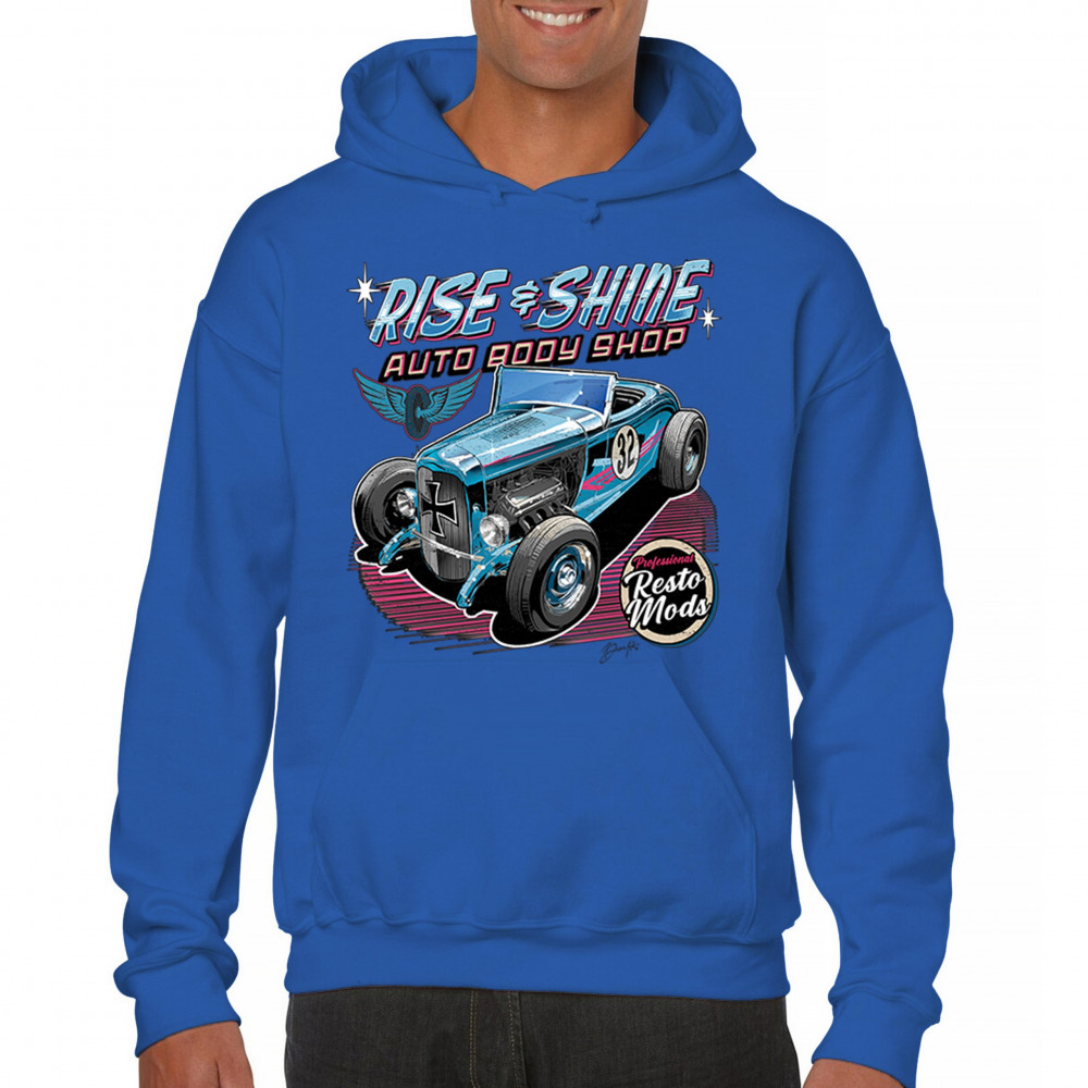 Our "Rise & Shine Auto Body Shop" design is a tribute to classic car culture and professional resto mods. This striking graphic showcases a vintage hot rod, perfect for car enthusiasts and auto restoration fans. Whether you're hitting the car show circuit or working in your garage, this design adds a touch of retro charm to your look. Crafted from premium materials, it offers both comfort and durability, ensuring it stands up to your active lifestyle. Celebrate the art of automotive restoration with this standout design.