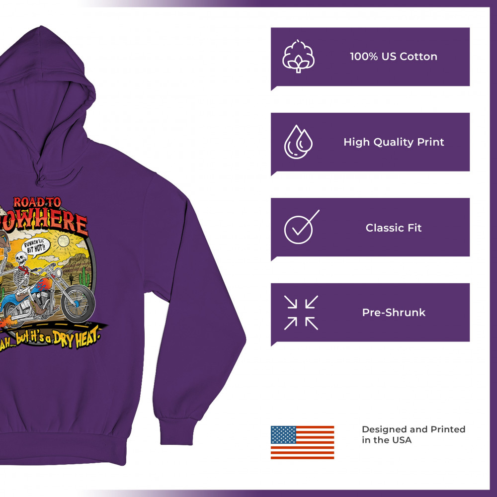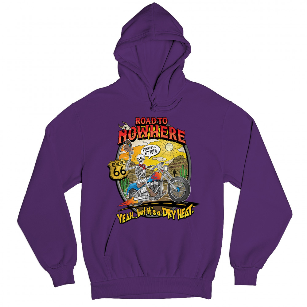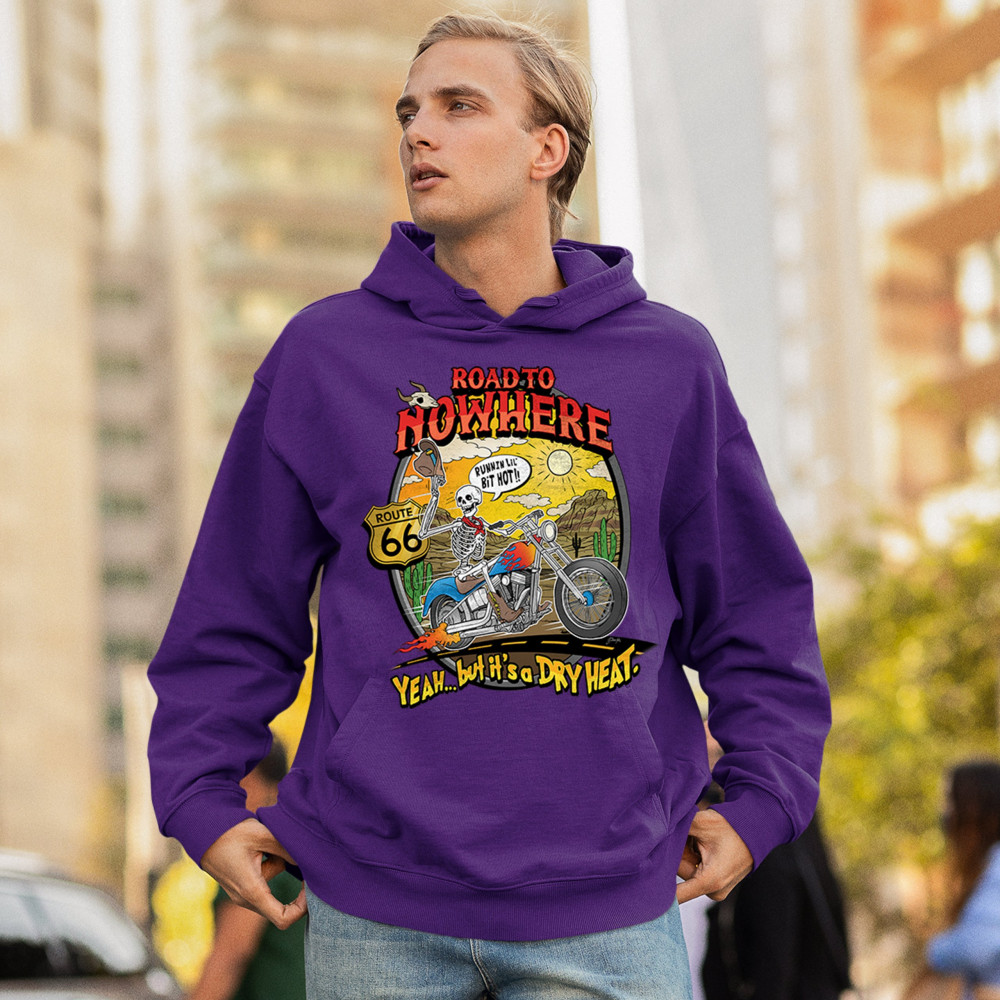 Our 'Road to Nowhere' tee is a salute to the thrill-seekers and the heat-bravers. Adorned with a bold skeleton cruising down Route 66, it embodies the spirit of adventure with a touch of playful defiance. A statement piece for anyone who lives for the ride and laughs in the face of danger. Join the ride into the sunset with this daring design.