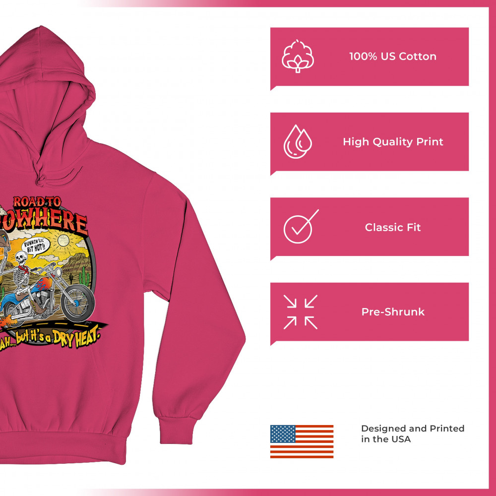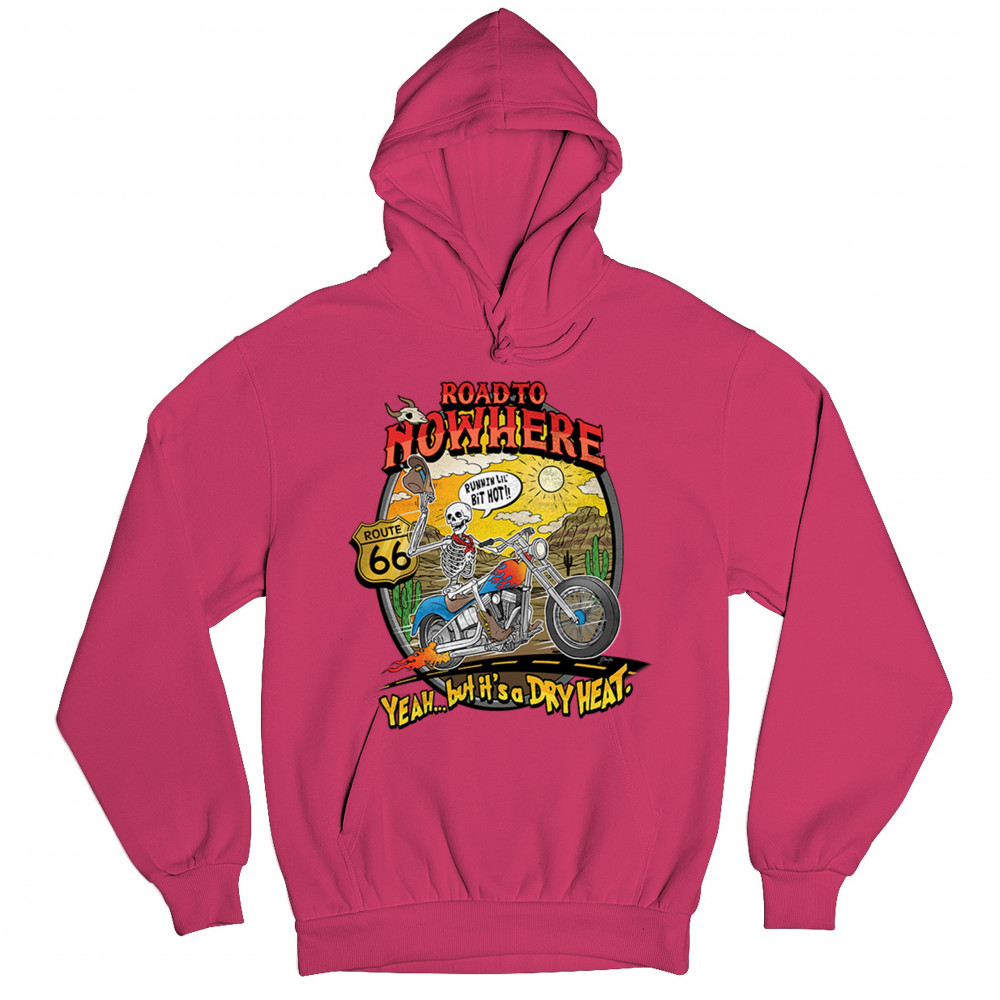 Discover the 'Road to Nowhere' T-shirt: a blend of bold graphics and adventurous spirit. Embrace the ride with our Route 66 skeleton biker design.