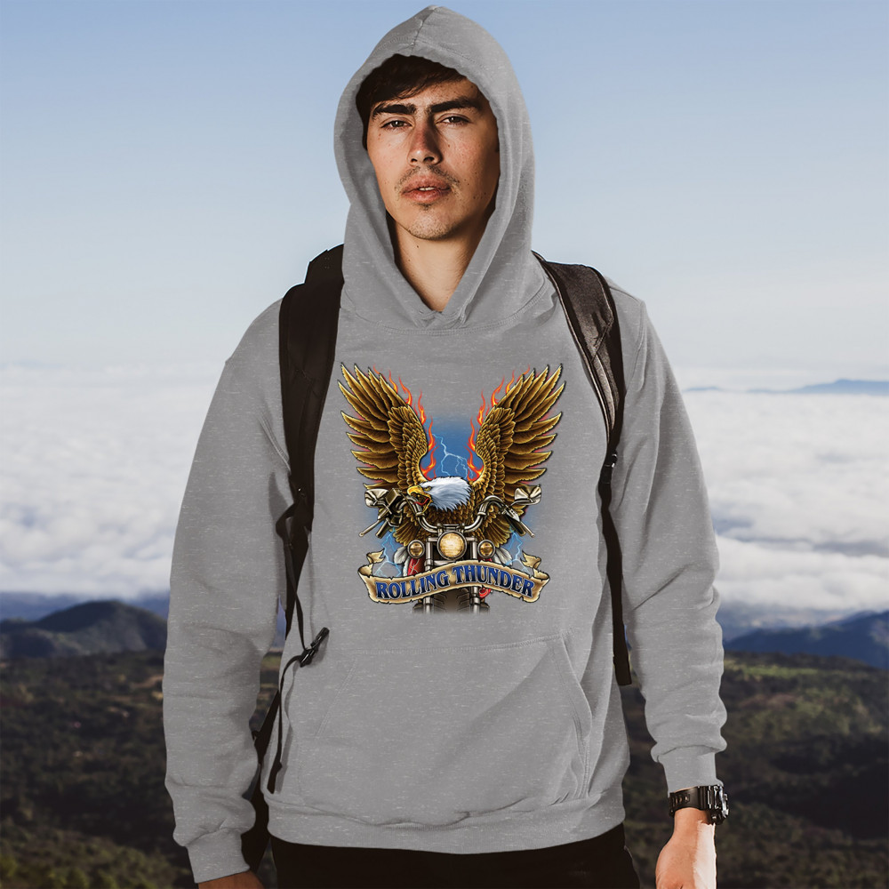 ROLLING THUNDER sweatshirt biker born to be wild bald eagle outlaw hoodie gray