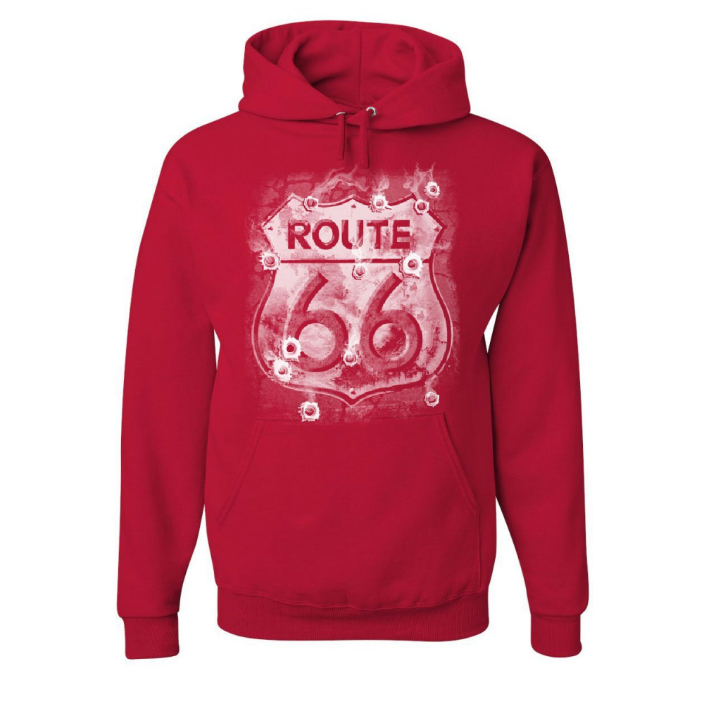 ROUTE 66 SIGN WITH BULLET HOLES route 66 hoodie bullet holes the mother road american highway sweatshirt red