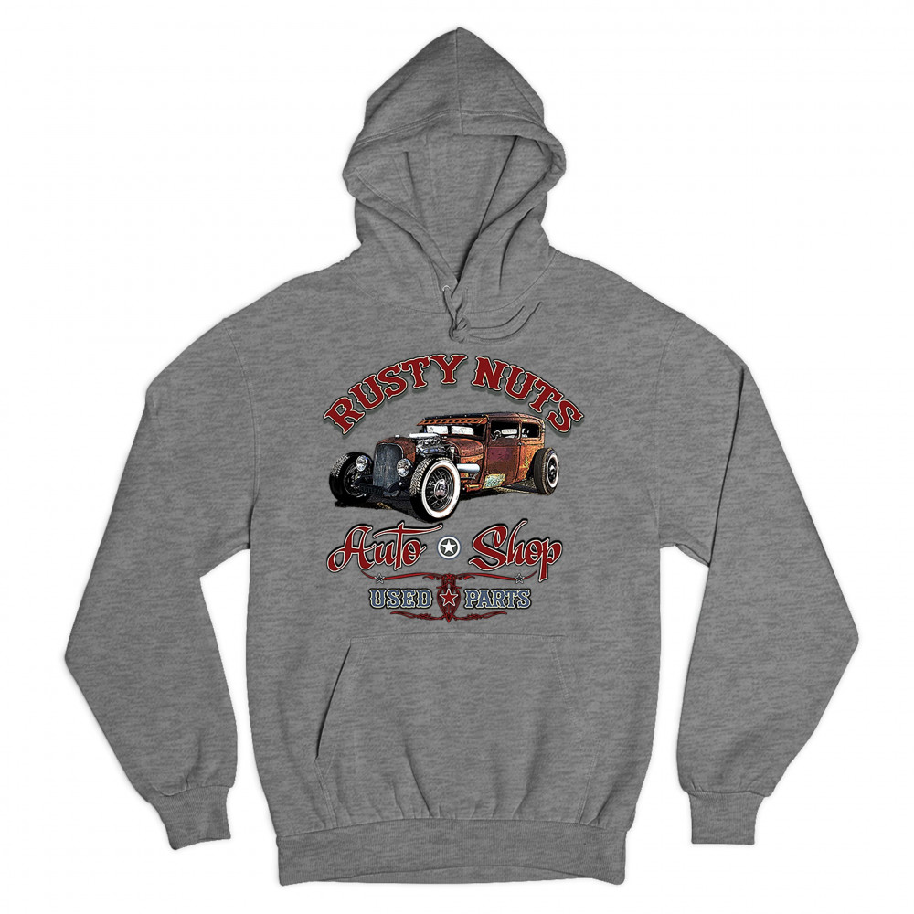RUSTY NUTS AUTO SHOP sweatshirt hot rod rat rod vintage old school hoodie gray