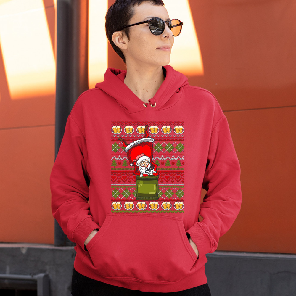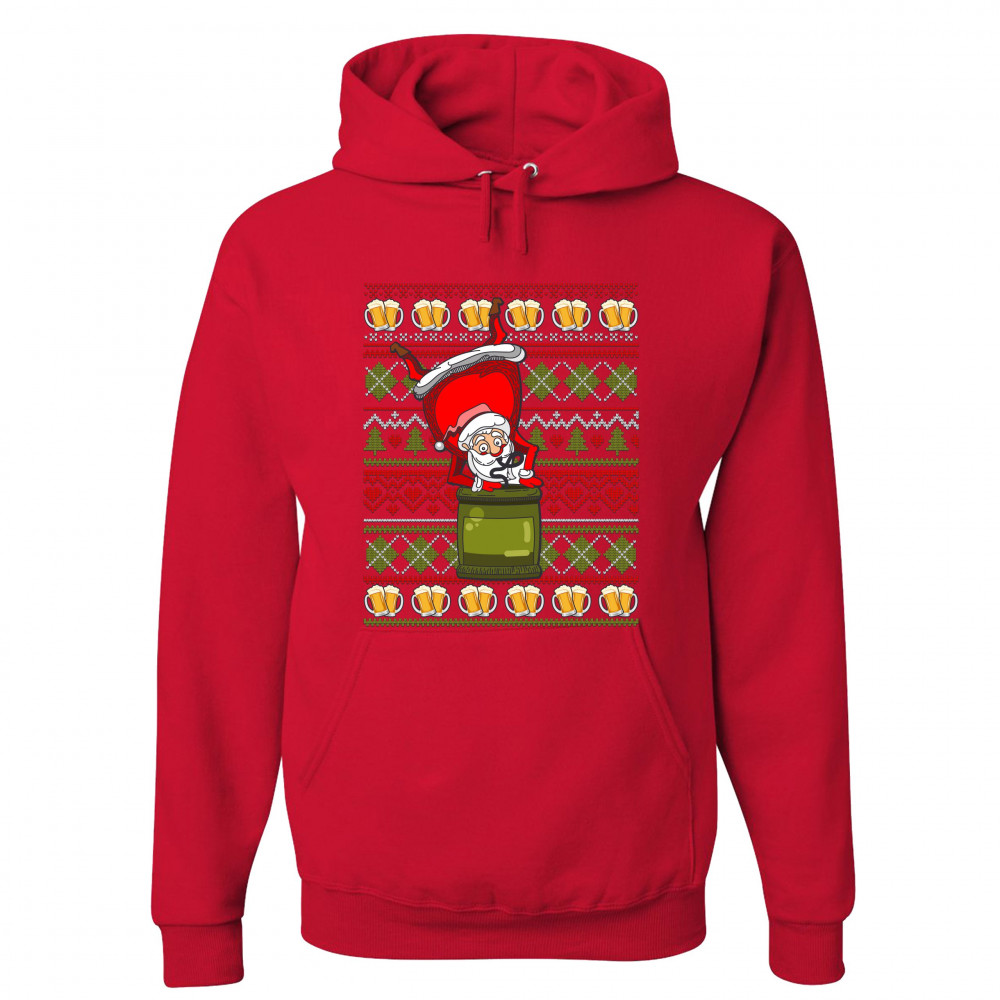 SANTA CLAUS KEG STAND sweatshirt christmas ugly sweater beer drinking hoodie red