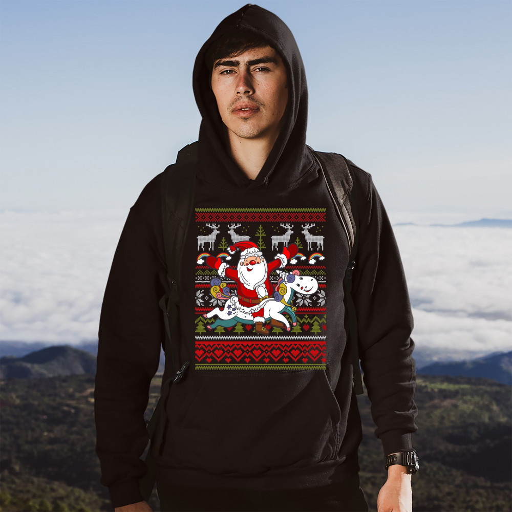 SANTA CLAUS RIDING A UNICORN sweatshirt merry christmas ugly sweater hoodie black