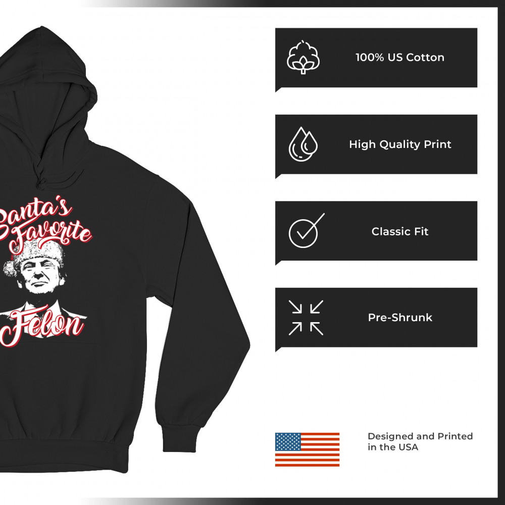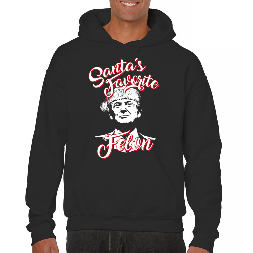 Celebrate the holidays with a touch of humor and political flair with the "Santa's Favorite Felon" design featuring Donald J. Trump. Perfect for Christmas parties, gift exchanges, and festive mornings, this standout design is ideal for sweatshirts, pajamas, or unique holiday gifts. A blend of humor and holiday spirit, this piece is a hit for ugly sweater contests and merry gatherings.