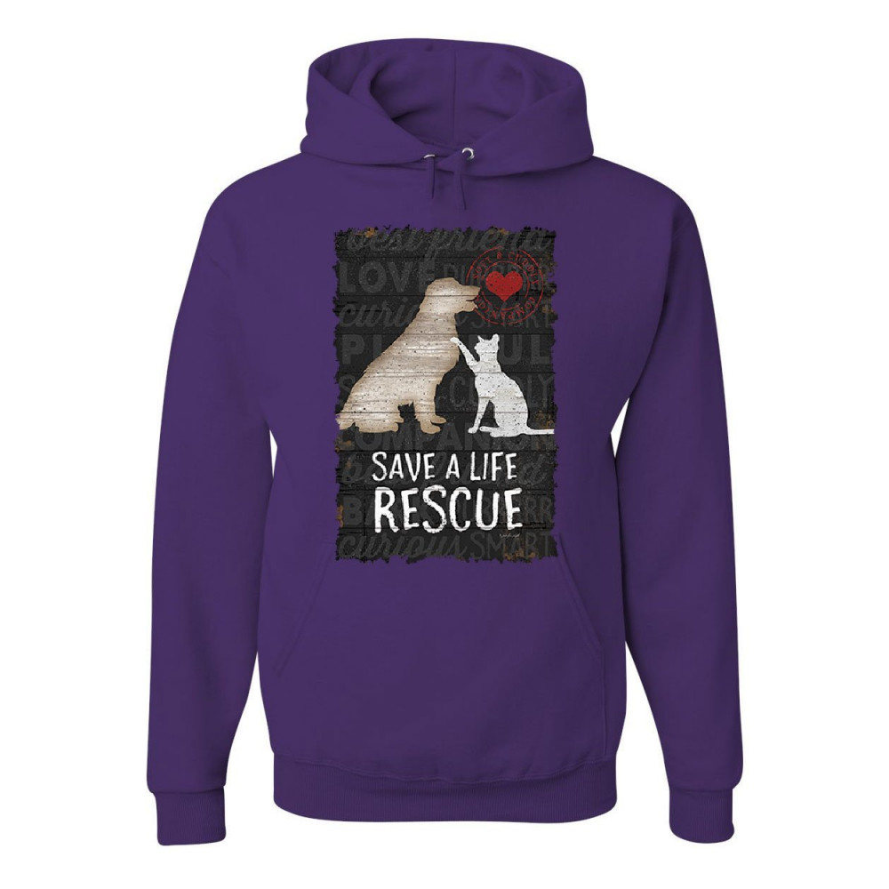 SAVE A LIFE rescue a pet hoodie dog cat kitty puppy shelter paw sweatshirt purple