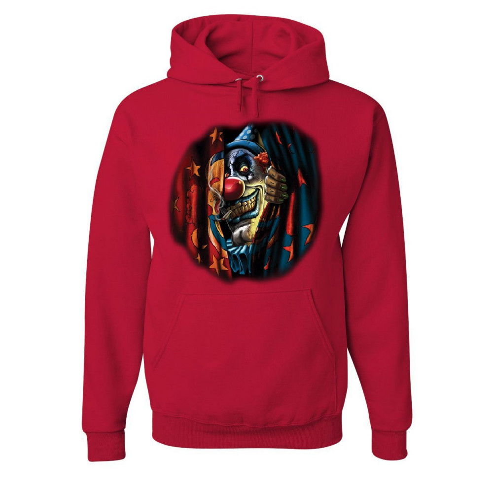 SCARY CIRCUS CLOWN hoodie insane creepy clown evil mad horror sweatshirt red