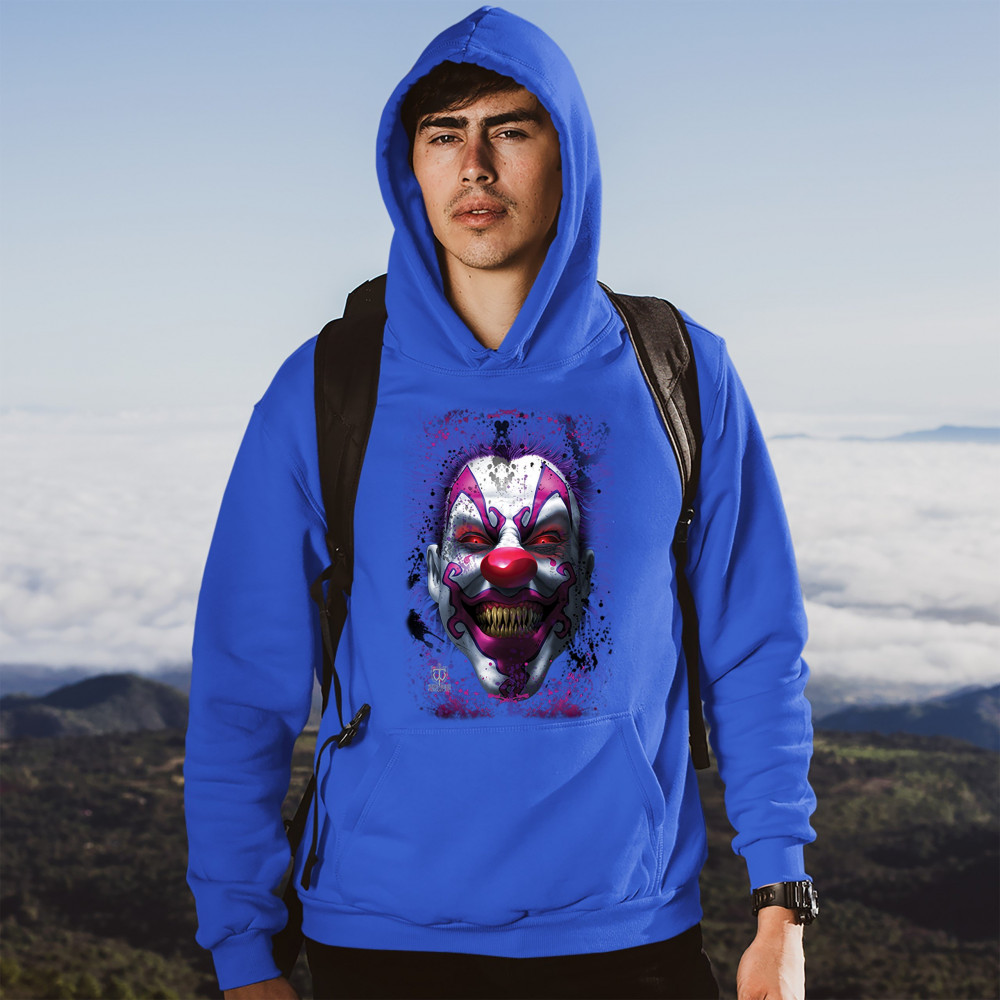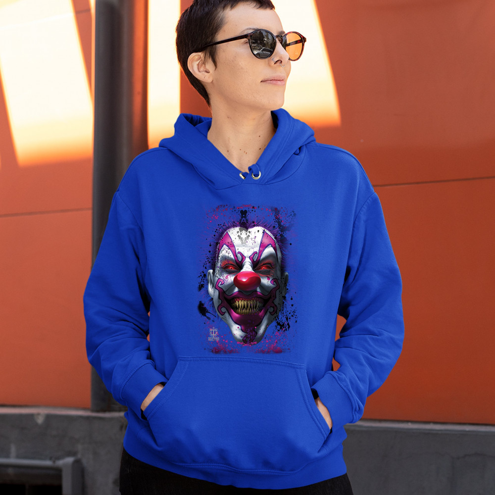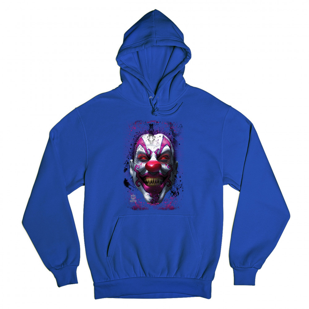 SCARY CREEPY GRINNING CLOWN sweatshirt spooky halloween horror hoodie royal blue