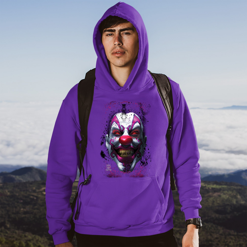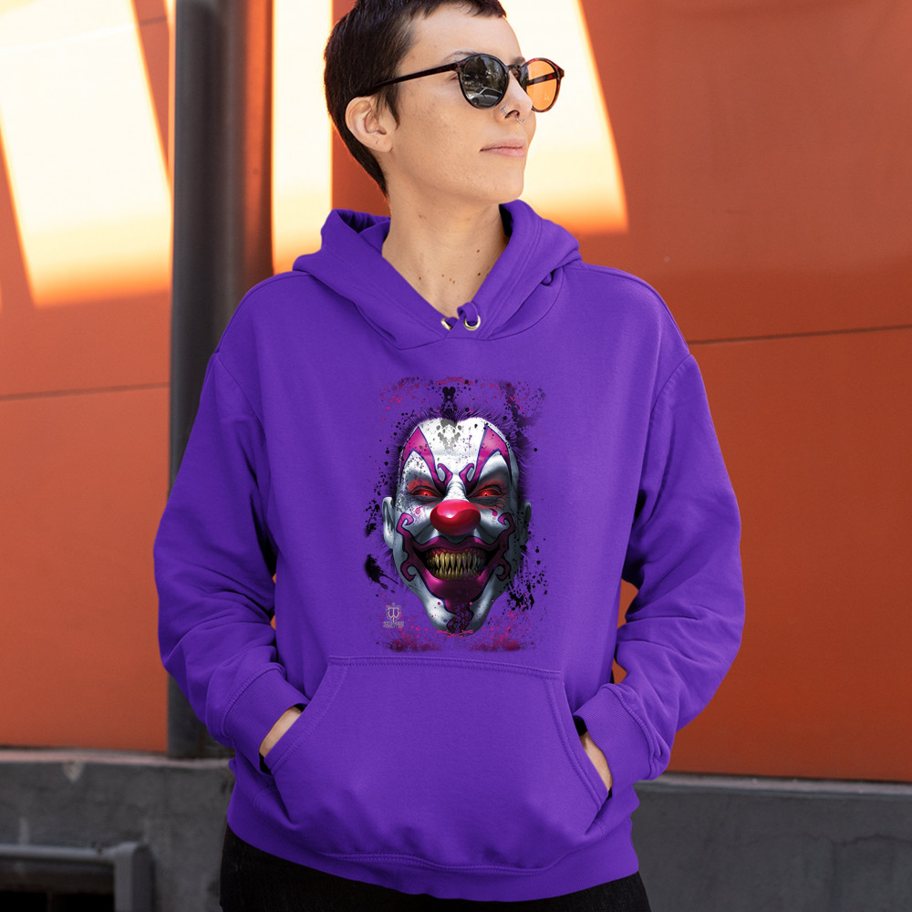 SCARY CREEPY GRINNING CLOWN sweatshirt spooky halloween horror hoodie purple