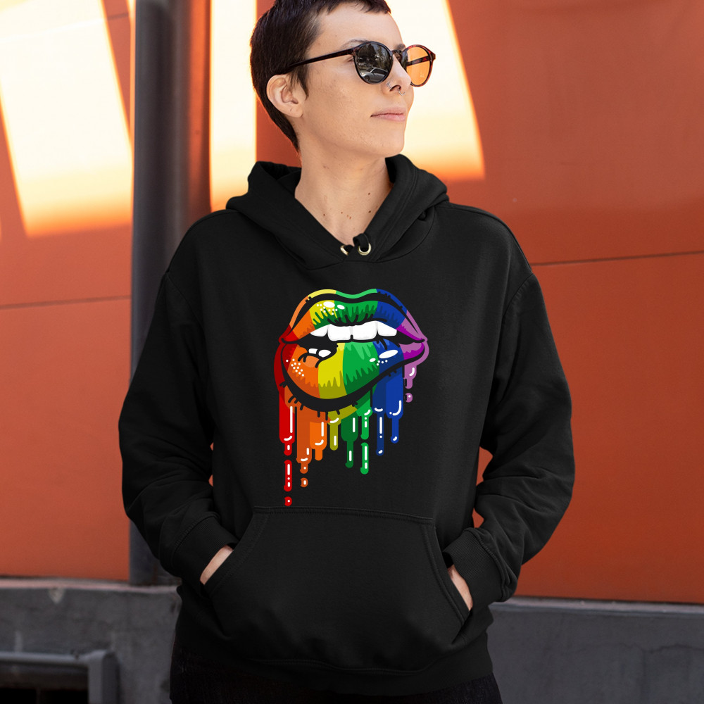 SEXY MELTING RAINBOW LIPS sweatshirt lgbt queer gay pride love wins hoodie black
