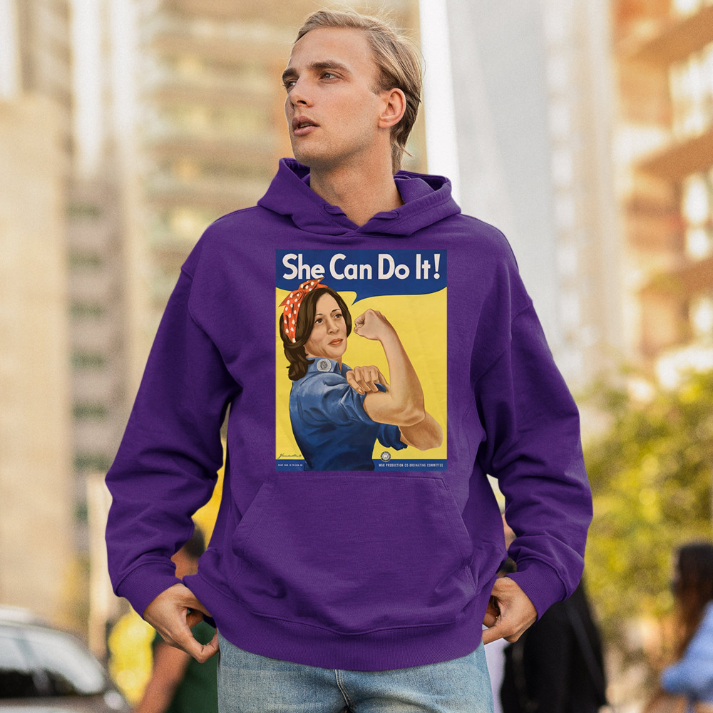 Show your support for Kamala Harris in 2024 with this empowering "She Can Do It!" design. Inspired by Rosie the Riveter, it symbolizes strength, equality, and progress.
