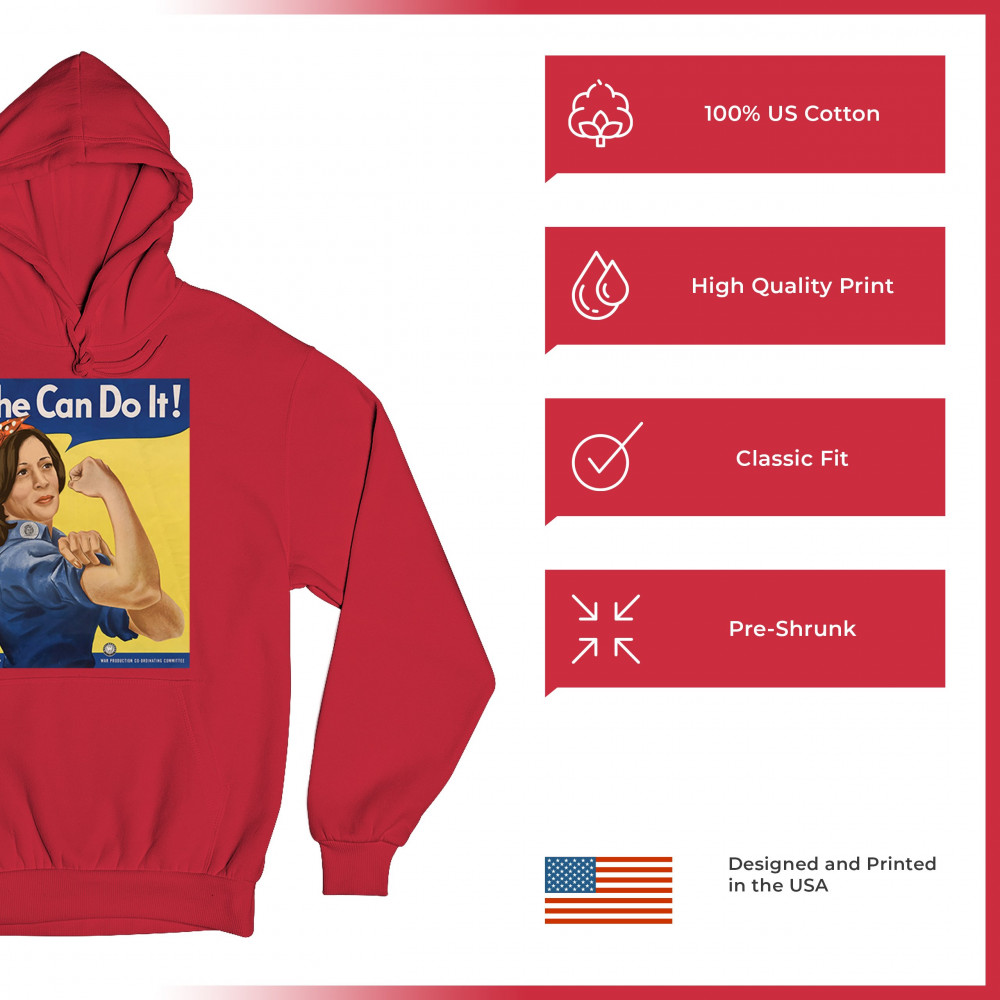 Show your support for Kamala Harris in 2024 with this empowering "She Can Do It!" design. Inspired by Rosie the Riveter, it symbolizes strength, equality, and progress.
