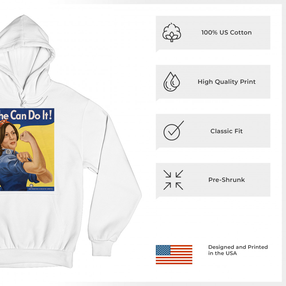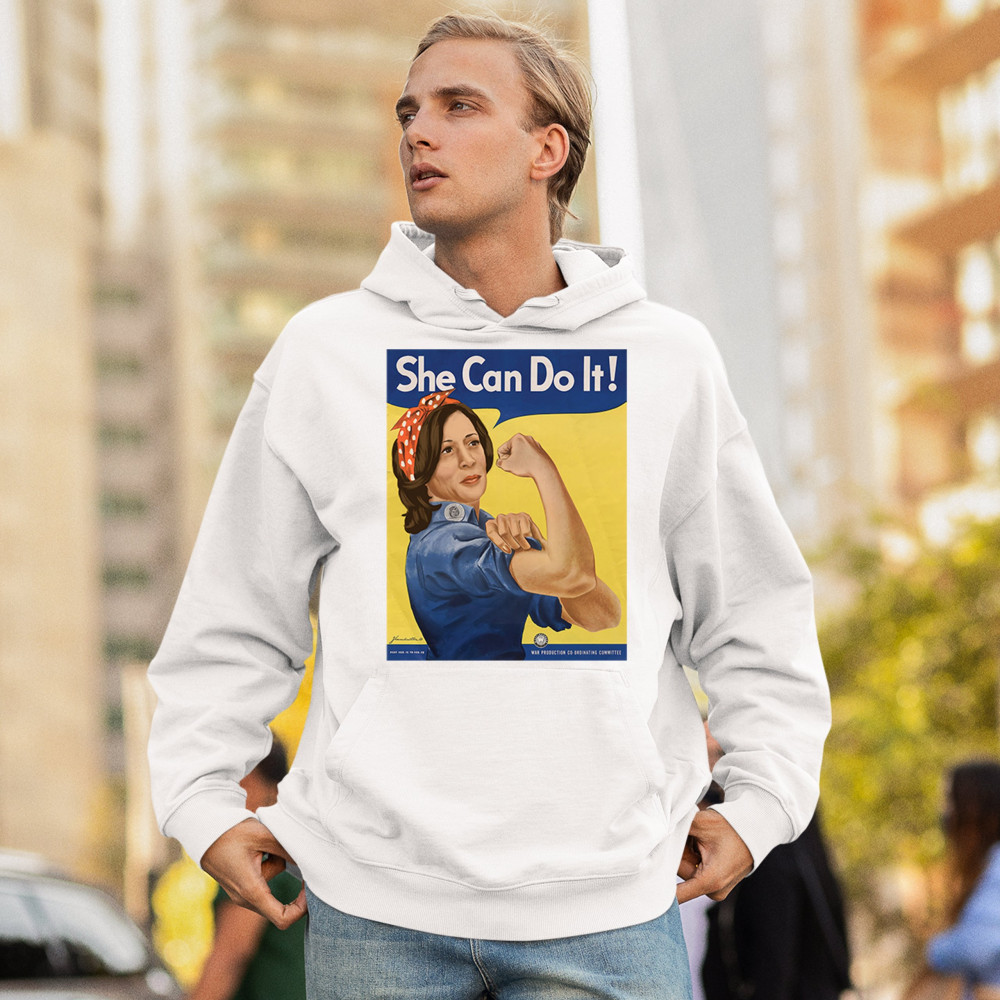 Show your support for Kamala Harris in 2024 with this empowering "She Can Do It!" design. Inspired by Rosie the Riveter, it symbolizes strength, equality, and progress.