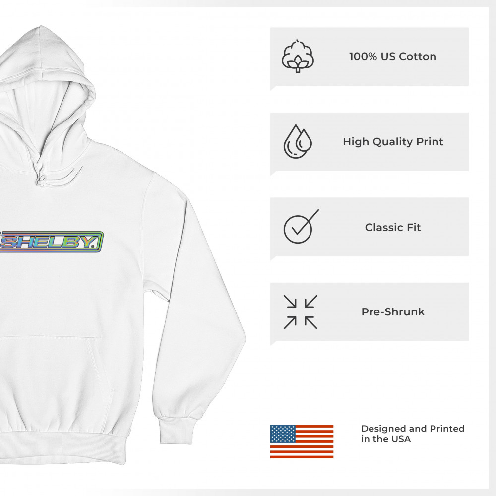 This holographic Shelby logo is an electrifying salute to an enduring legend of the American racetrack. It embodies the storied history of Carroll Shelby's vision, from the powerful drag of a GT350 to the robust growl of a GT500. Embrace the drift and drive that has defined the Mustang, captured in apparel that's perfect for any enthusiast's collection—be it a tshirt, hoodie, hat, or jacket. This licensed design honors years of muscle innovation, a true gift for the die-hard fan.