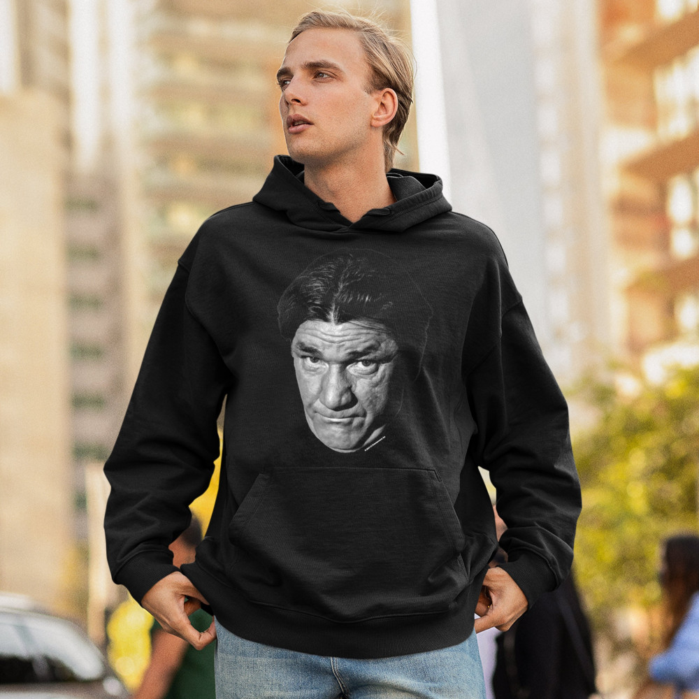 Embrace the humor of the legendary Three Stooges with this captivating design, featuring the unforgettable Shemp. Known for his spontaneity and comedic genius, Shemp's 'dumbfounded' look is immortalized in this high-contrast piece, offering a nostalgic nod to the golden era of slapstick. Perfect for Stooge enthusiasts and collectors, it adds a touch of classic comedy flair to any ensemble.