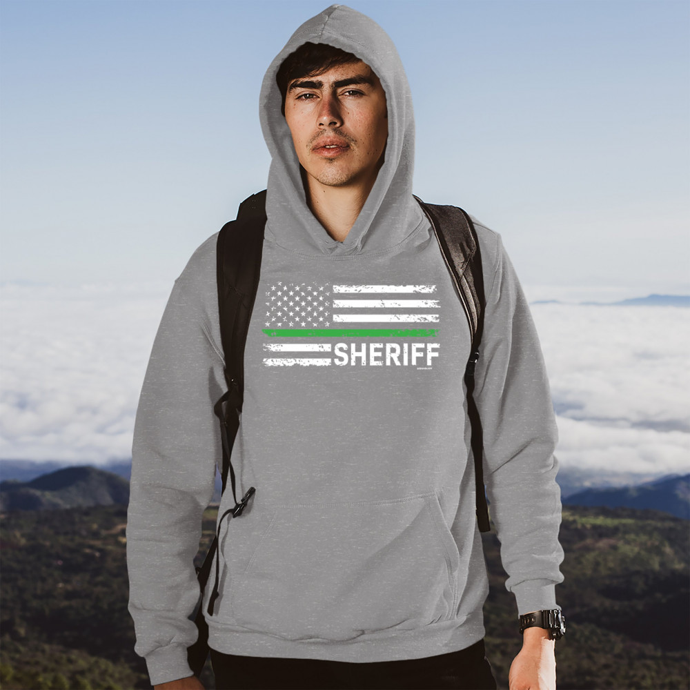 SHERIFF DISTRESSED AMERICAN FLAG sweatshirt first responders patriotic hoodie gray