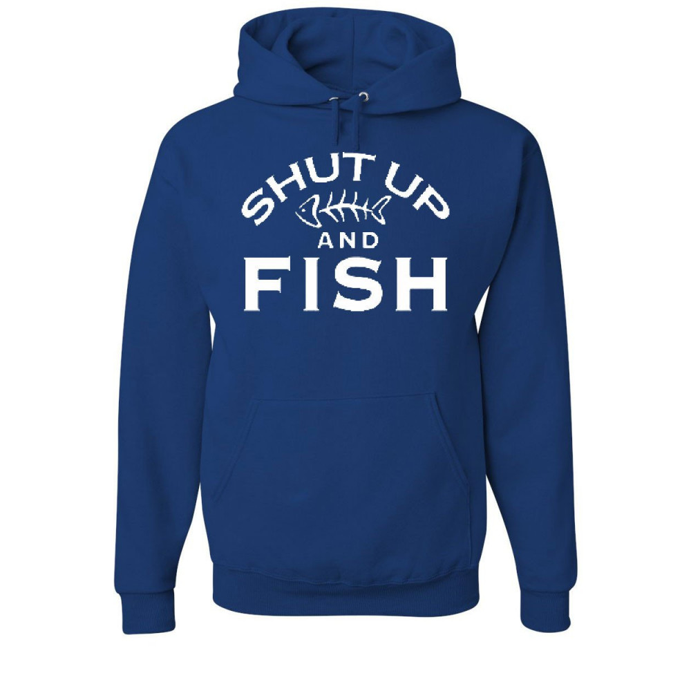 SHUT UP AND FISH hoodie funny fishing sweatshirt royal blue