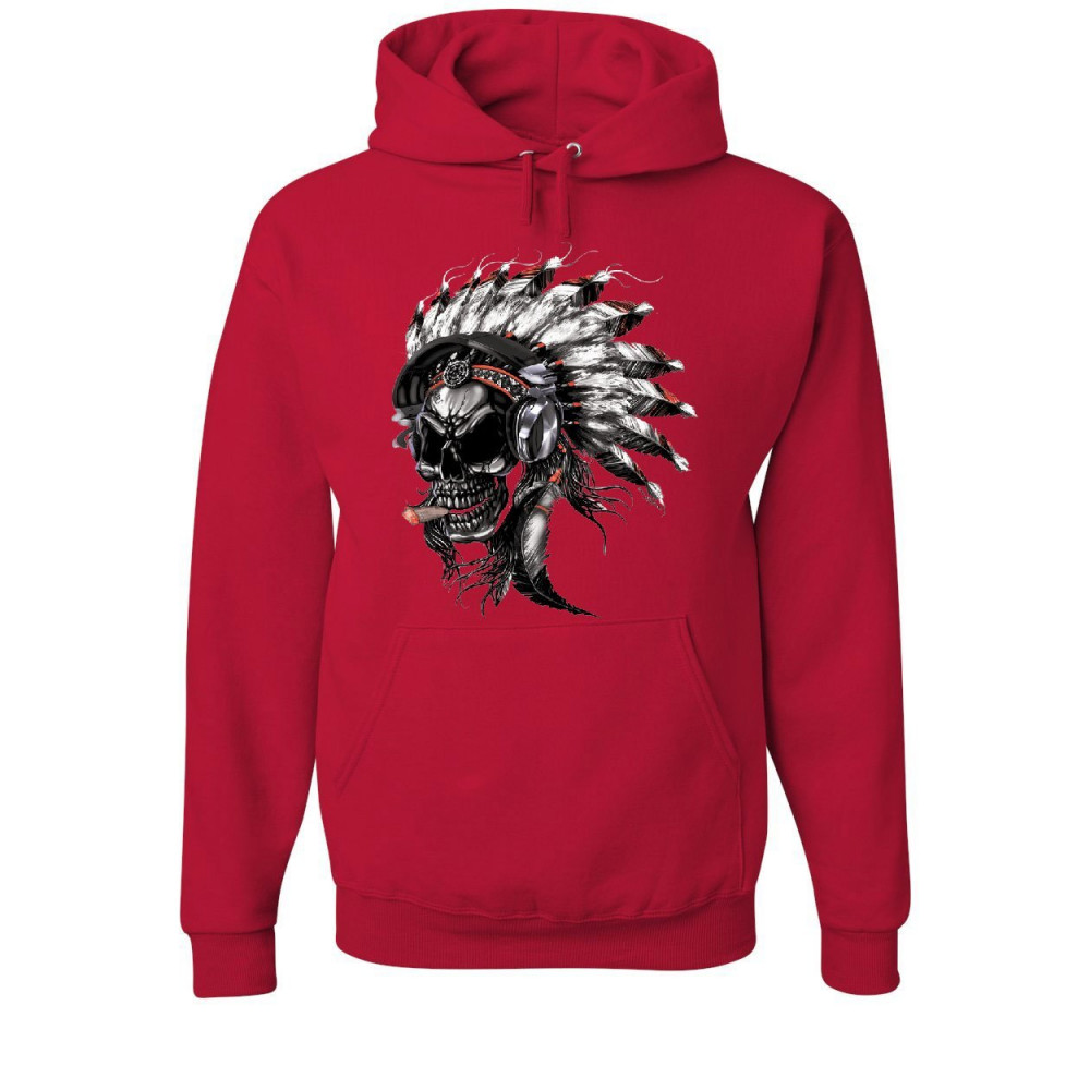 SKULL WITH INDIAN HEADRESS hoodie headphones cigar sweatshirt red