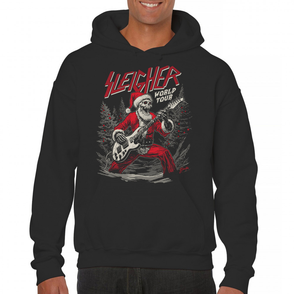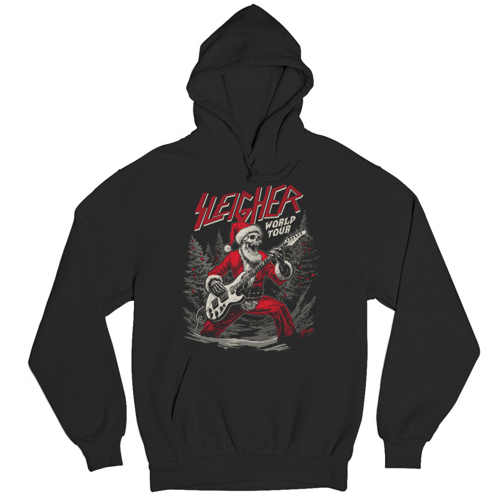 Bring the perfect mix of holiday cheer and rock ‘n’ roll to your wardrobe with the "Sleigher World Tour" design! Featuring a Santa skeleton rocking an electric guitar, this unique and edgy artwork is ideal for music lovers, ugly sweater contests, and festive gatherings. Celebrate Christmas with a rebellious twist and make every holiday event unforgettable!