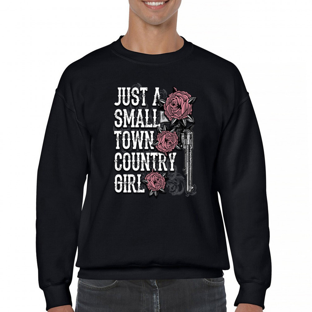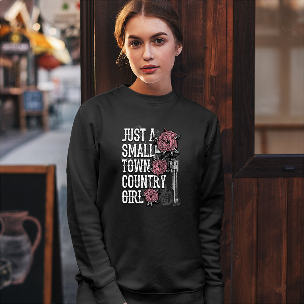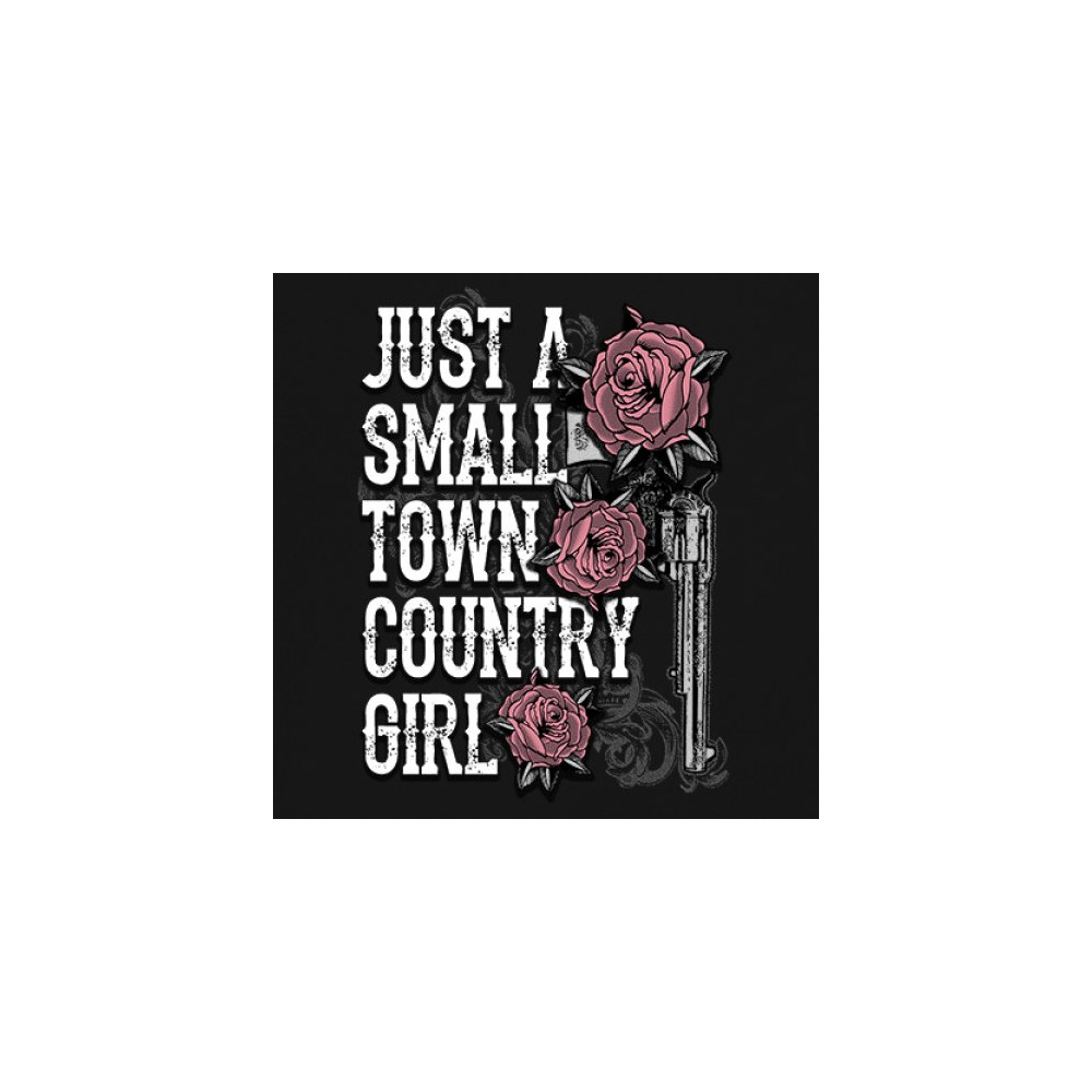 Rustic small town country girl design with rose and revolver art. Great for cowgirls, rodeos, fairs, and southern pride style.