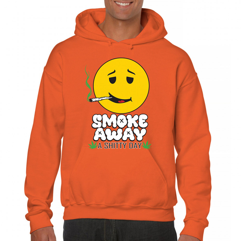 Smiley face with joint and “Smoke Away a Sh*tty Day†message. A perfect cannabis design for stoners, chillers, and sarcastic stress relief.