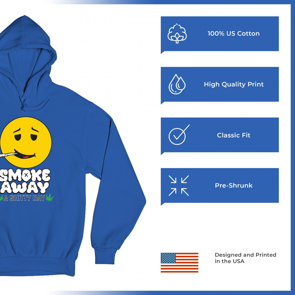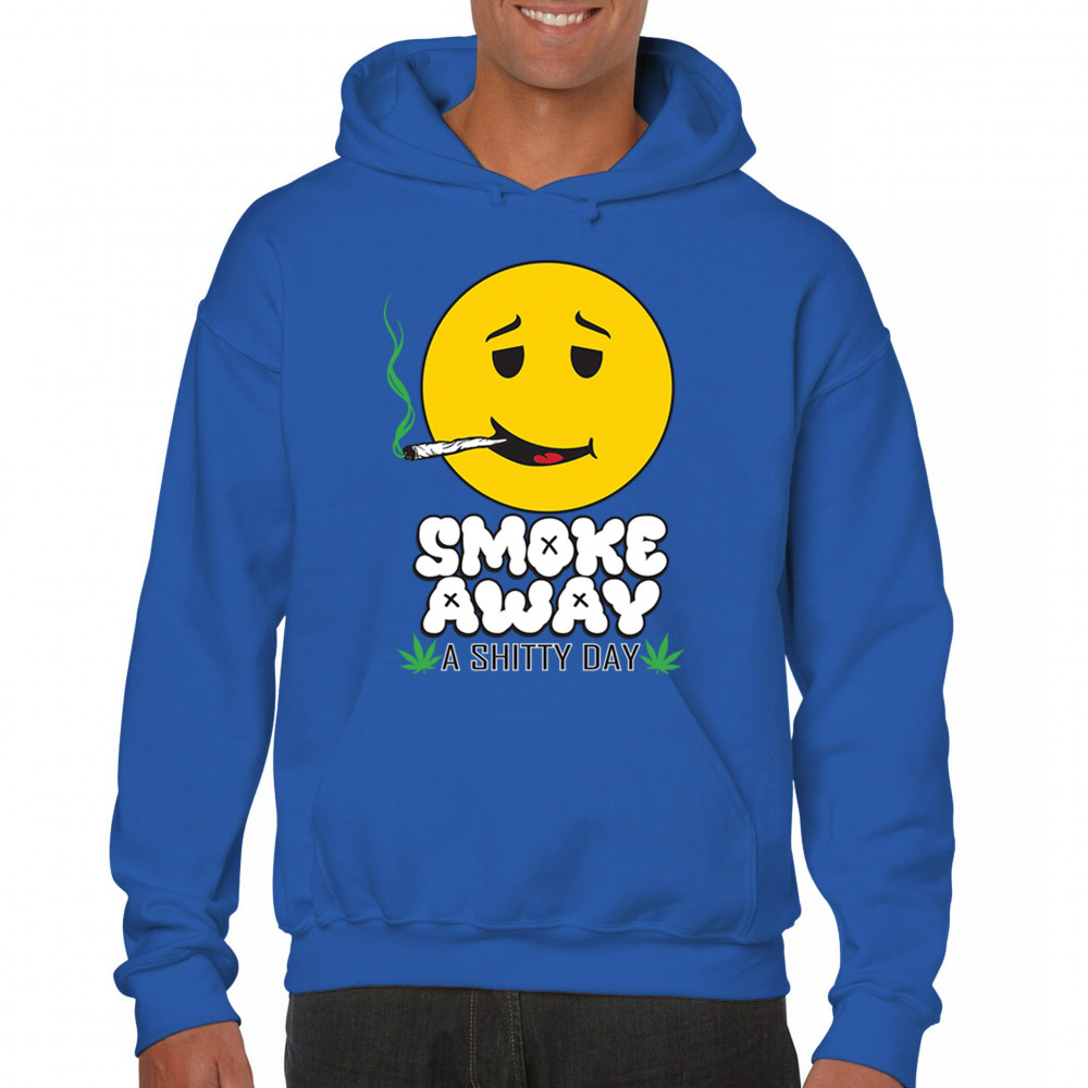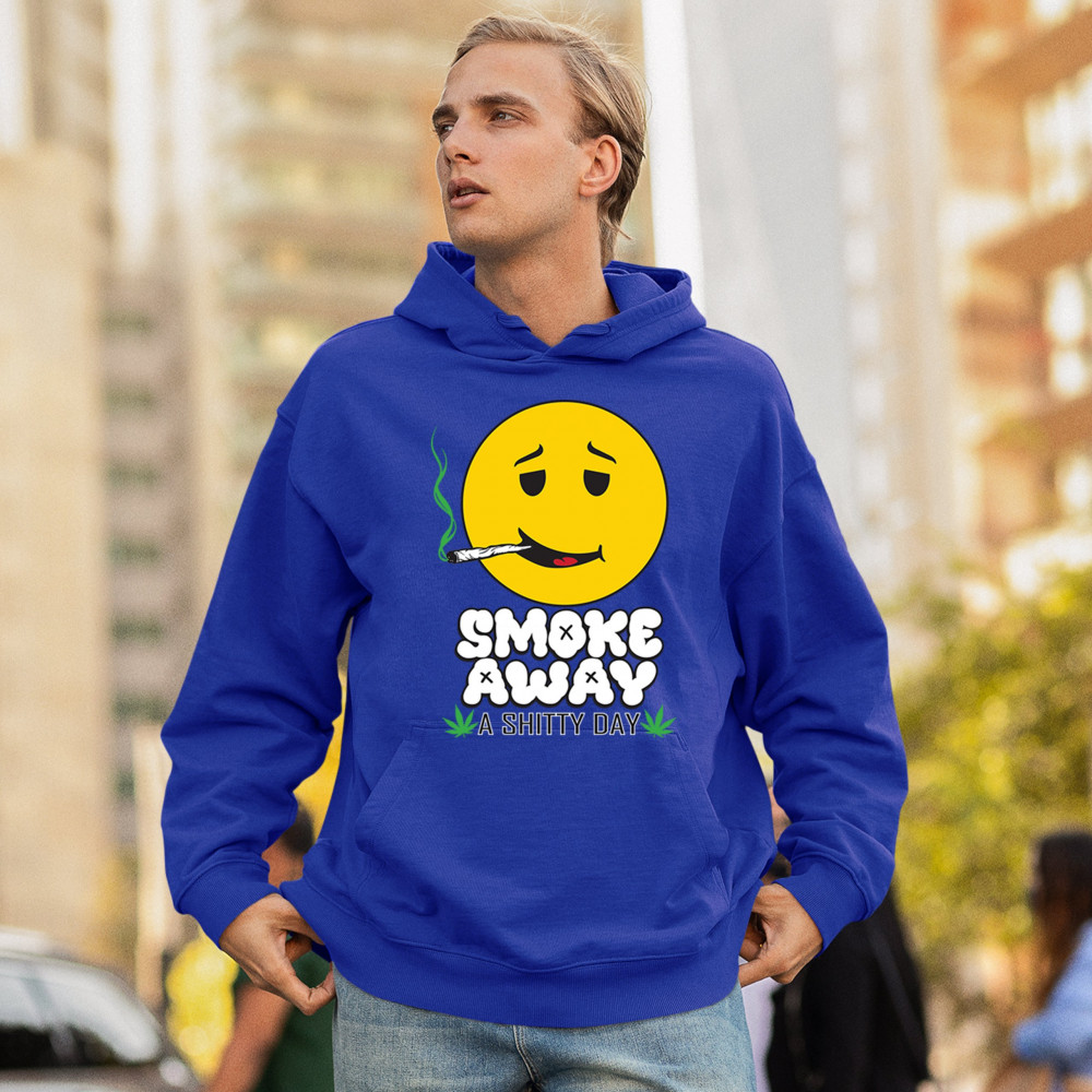 Smiley face with joint and “Smoke Away a Sh*tty Day†message. A perfect cannabis design for stoners, chillers, and sarcastic stress relief.