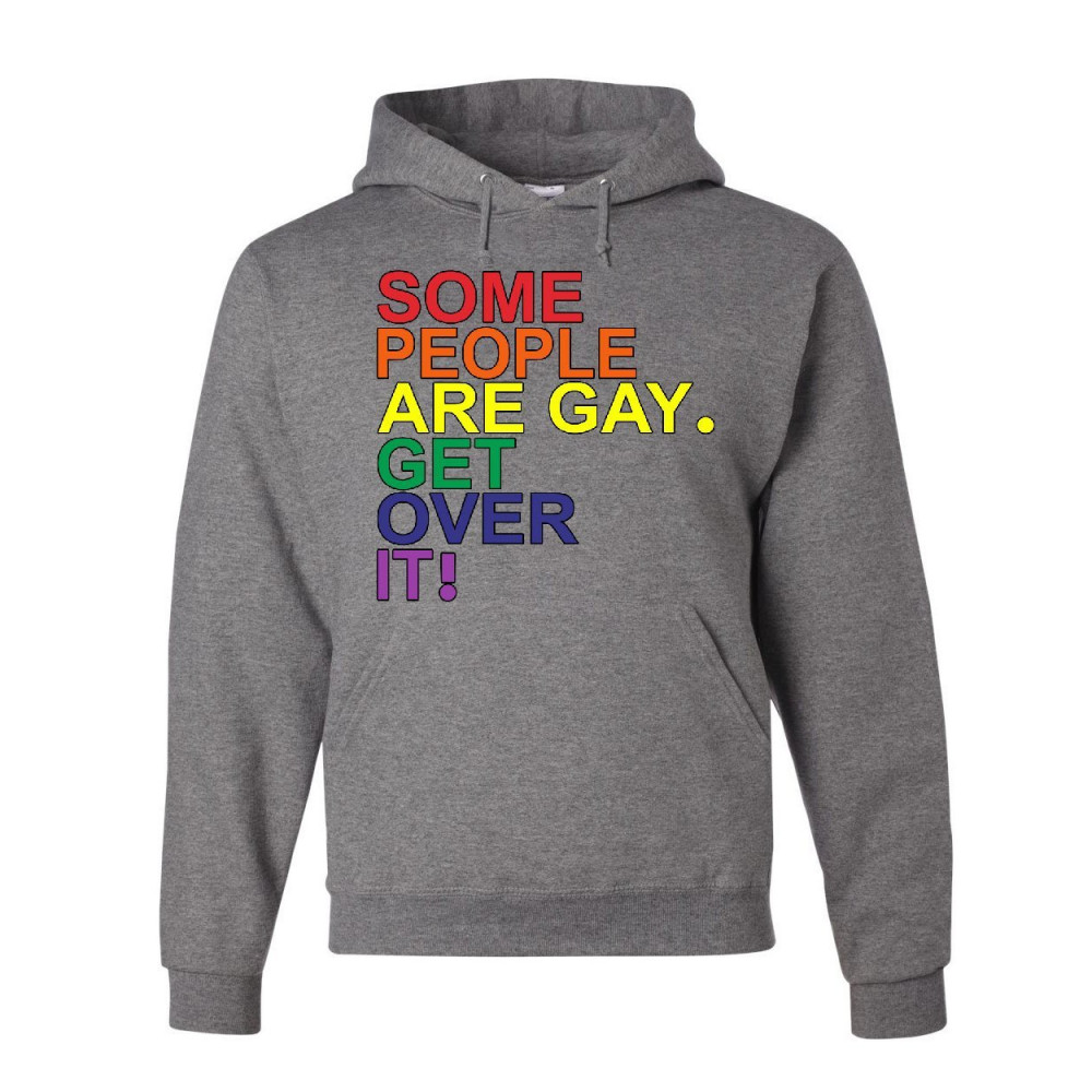 SOME PEOPLE ARE GAY. GET OVER IT! hoodie lgbtq pride rainbow sweatshirt gray