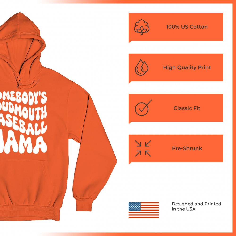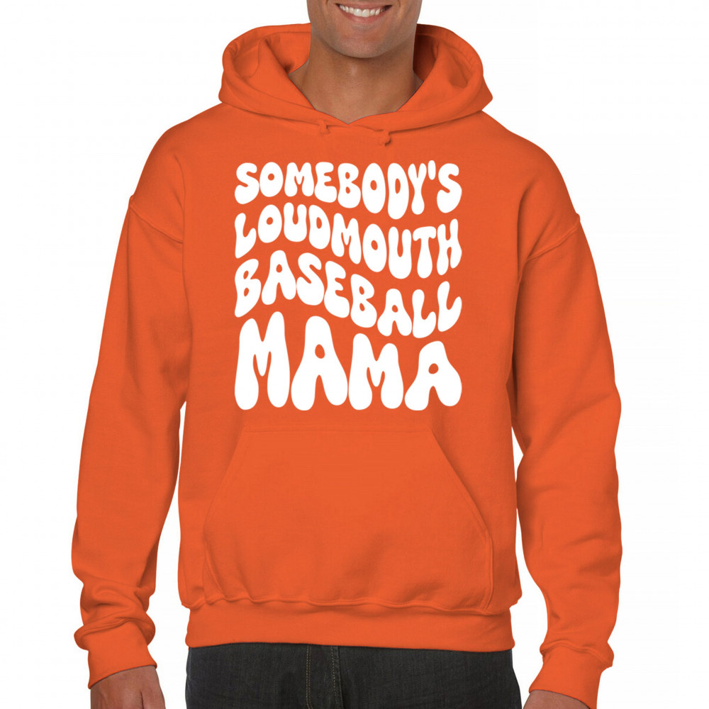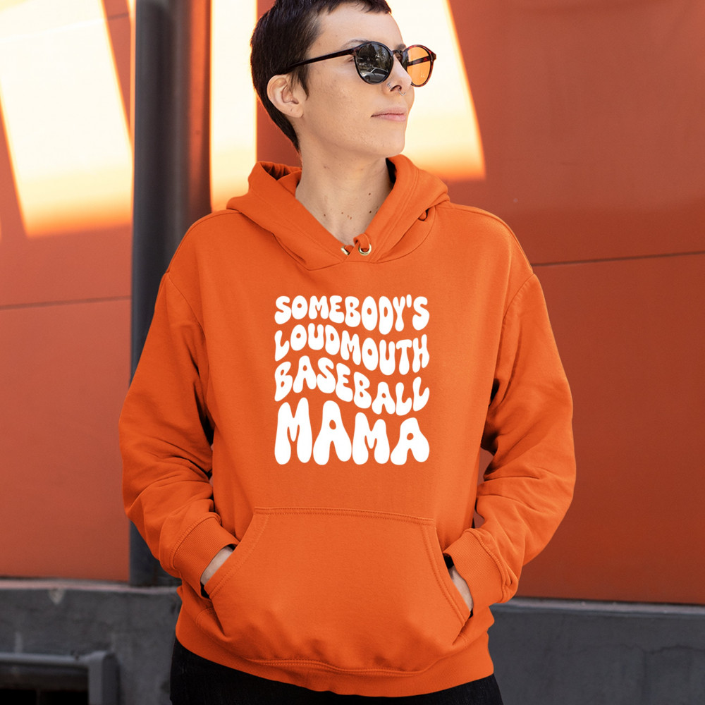 SOMEBODY'S LOUDMOUTH BASEBALL MAMA sweatshirt proud mom game day funny hoodie orange