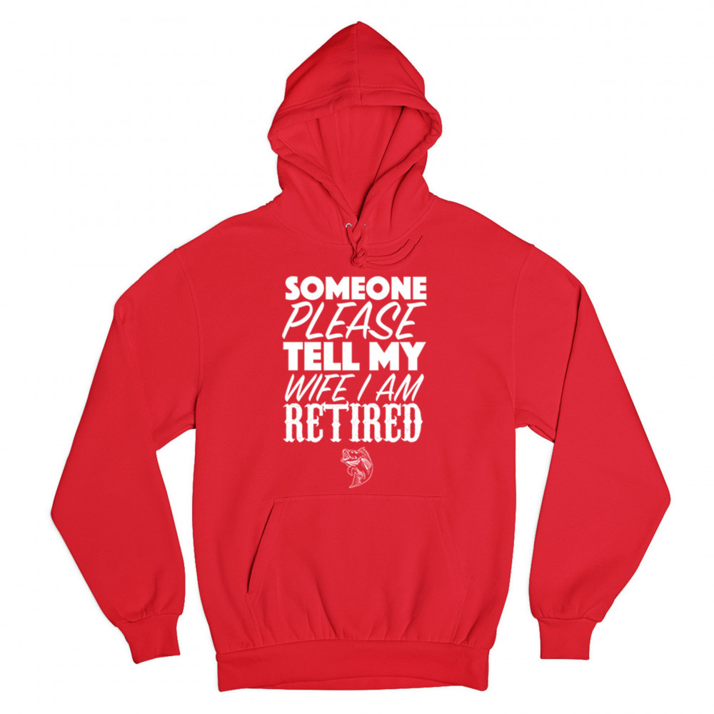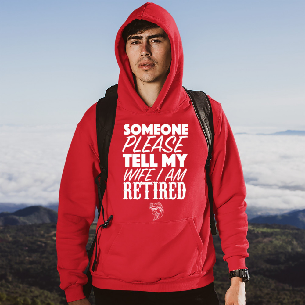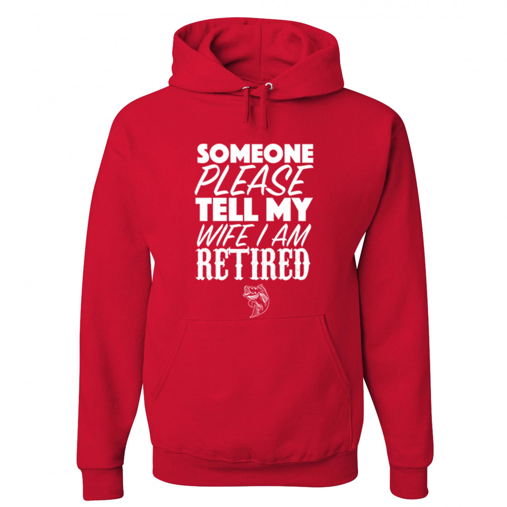 SOMEONE PLEASE TELL MY WIFE I AM RETIRED sweatshirt father's day hoodie red