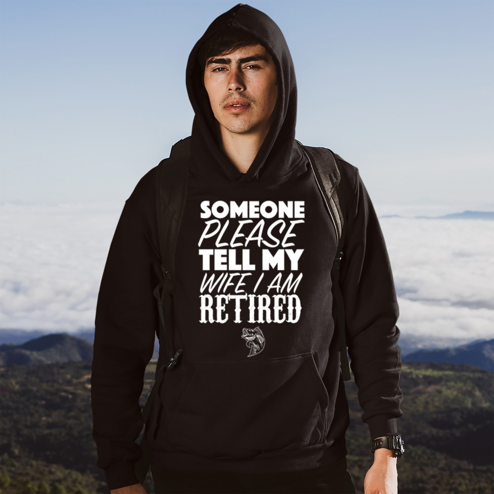 SOMEONE PLEASE TELL MY WIFE I AM RETIRED sweatshirt father's day hoodie black