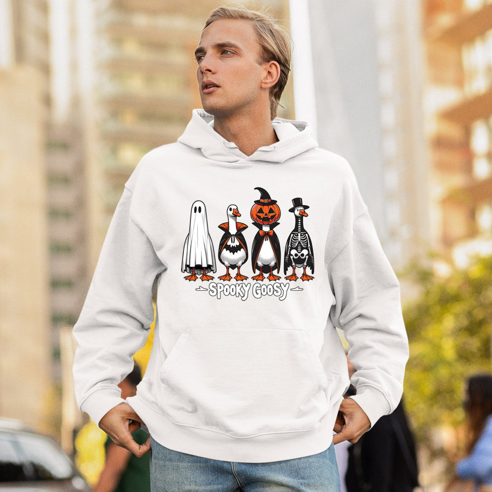 Bring the spooky fun to life with this Spooky Goosy Halloween design featuring geese in witch, skeleton, vampire, and pumpkin costumes. Perfect for haunted house nights, October 31 trick-or-treat events, or monster mash gatherings. A funny and festive choice for goose lovers and Halloween enthusiasts who enjoy creepy costume vibes.